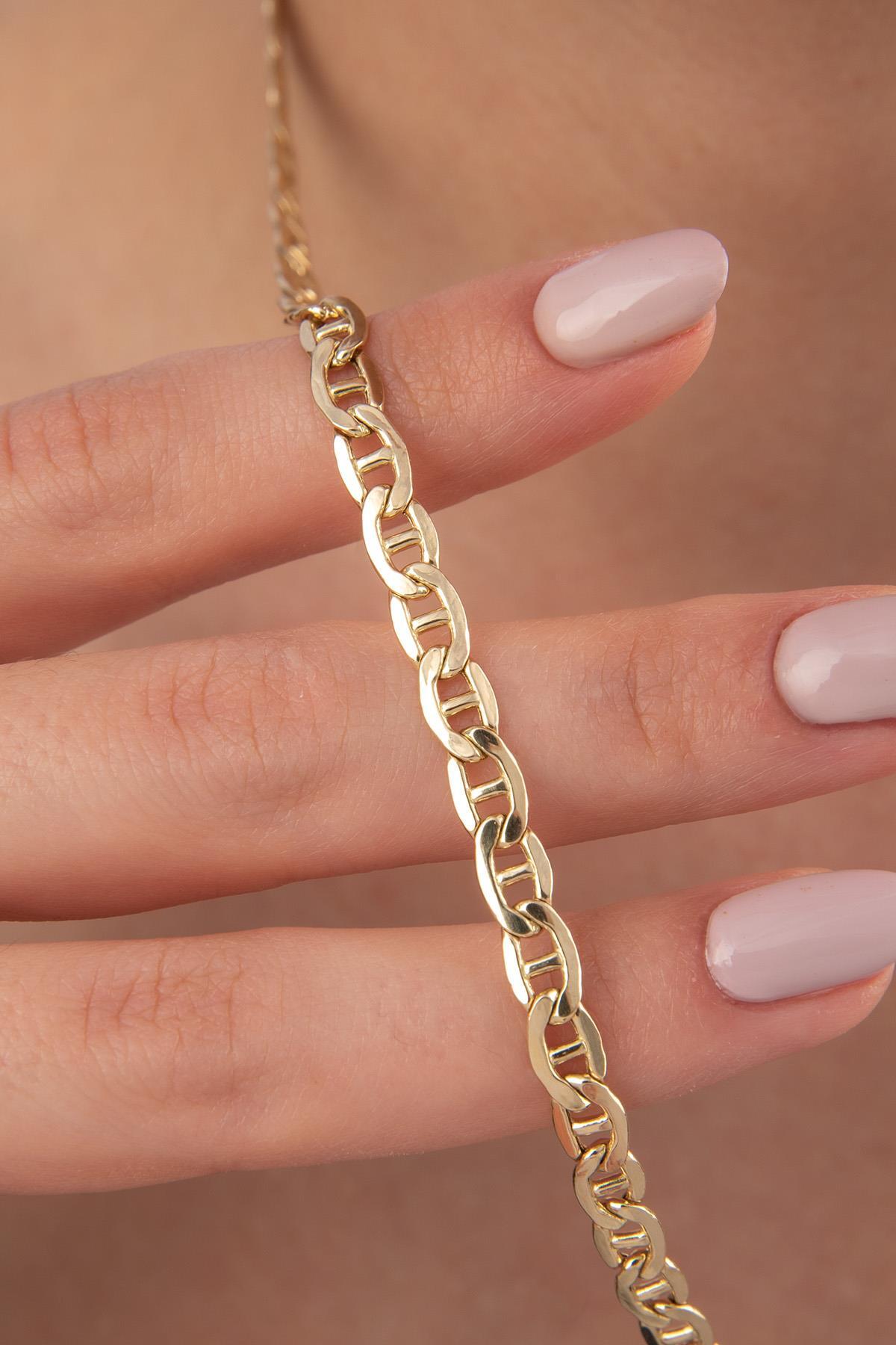 14 Ayar Altın Barlı Valentino Zincir Kolye 5 mm