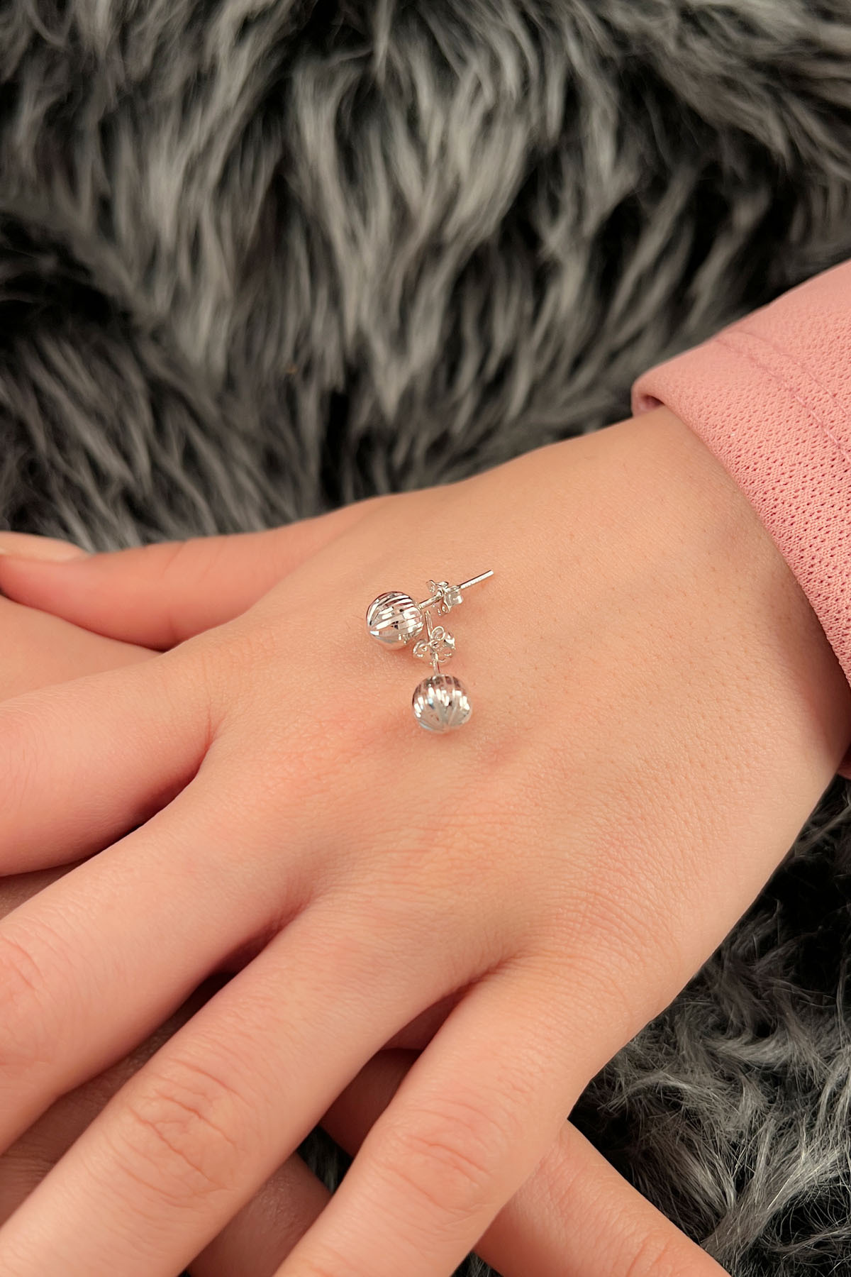 14 Ayar Altın Beyaz Işıltılı Top Küpe Büyük