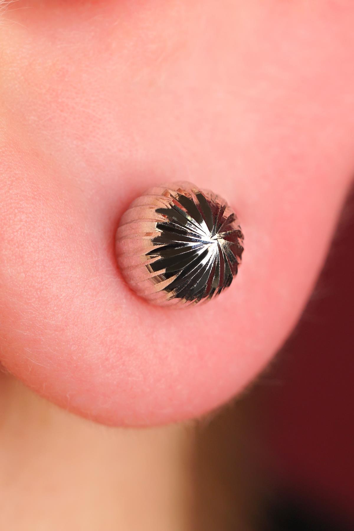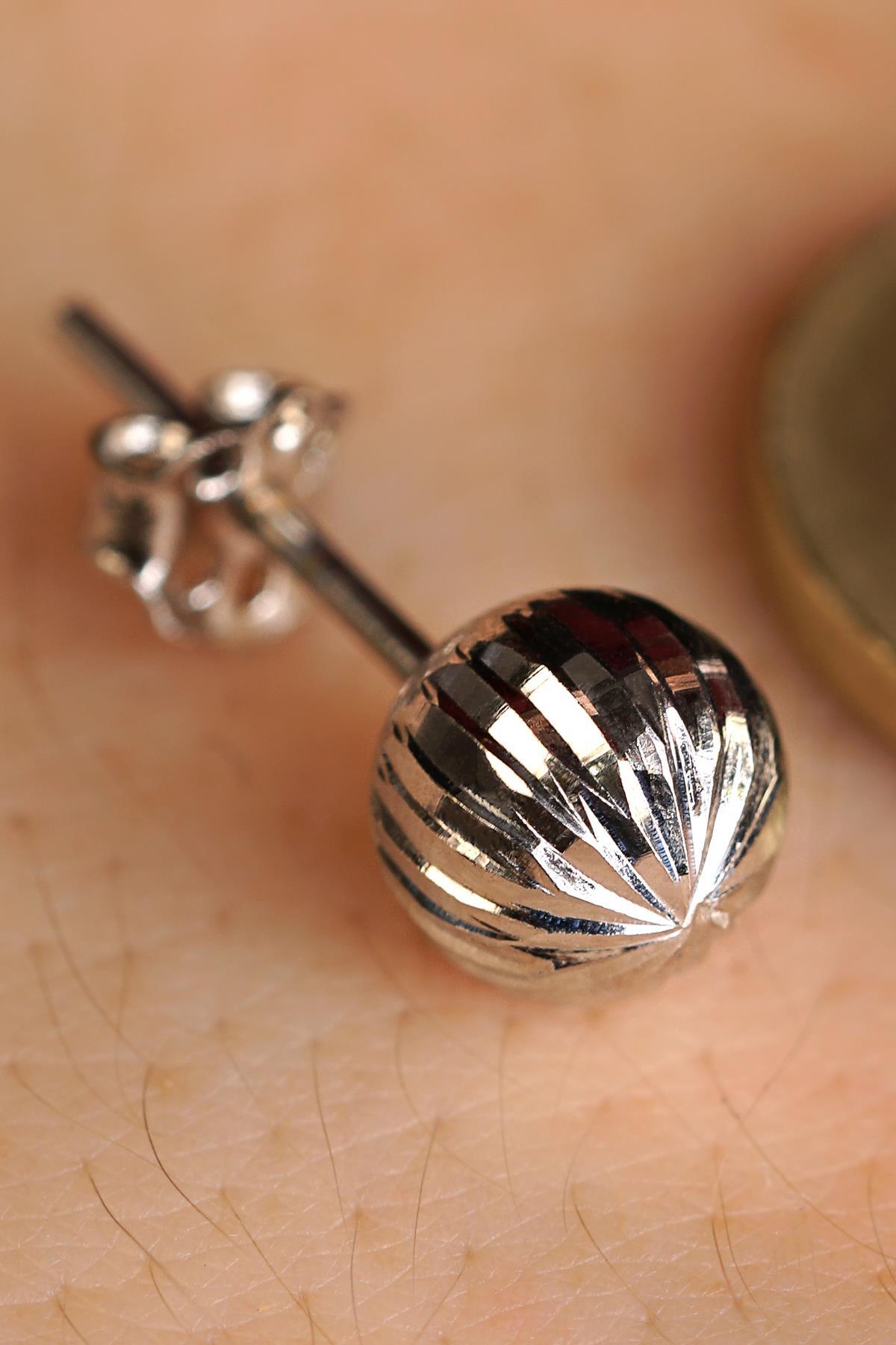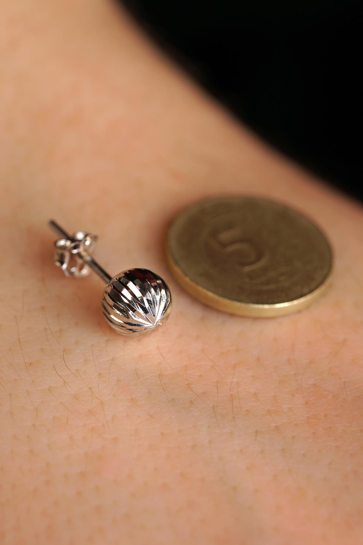 14 Ayar Altın Beyaz Işıltılı Top Küpe Erkek