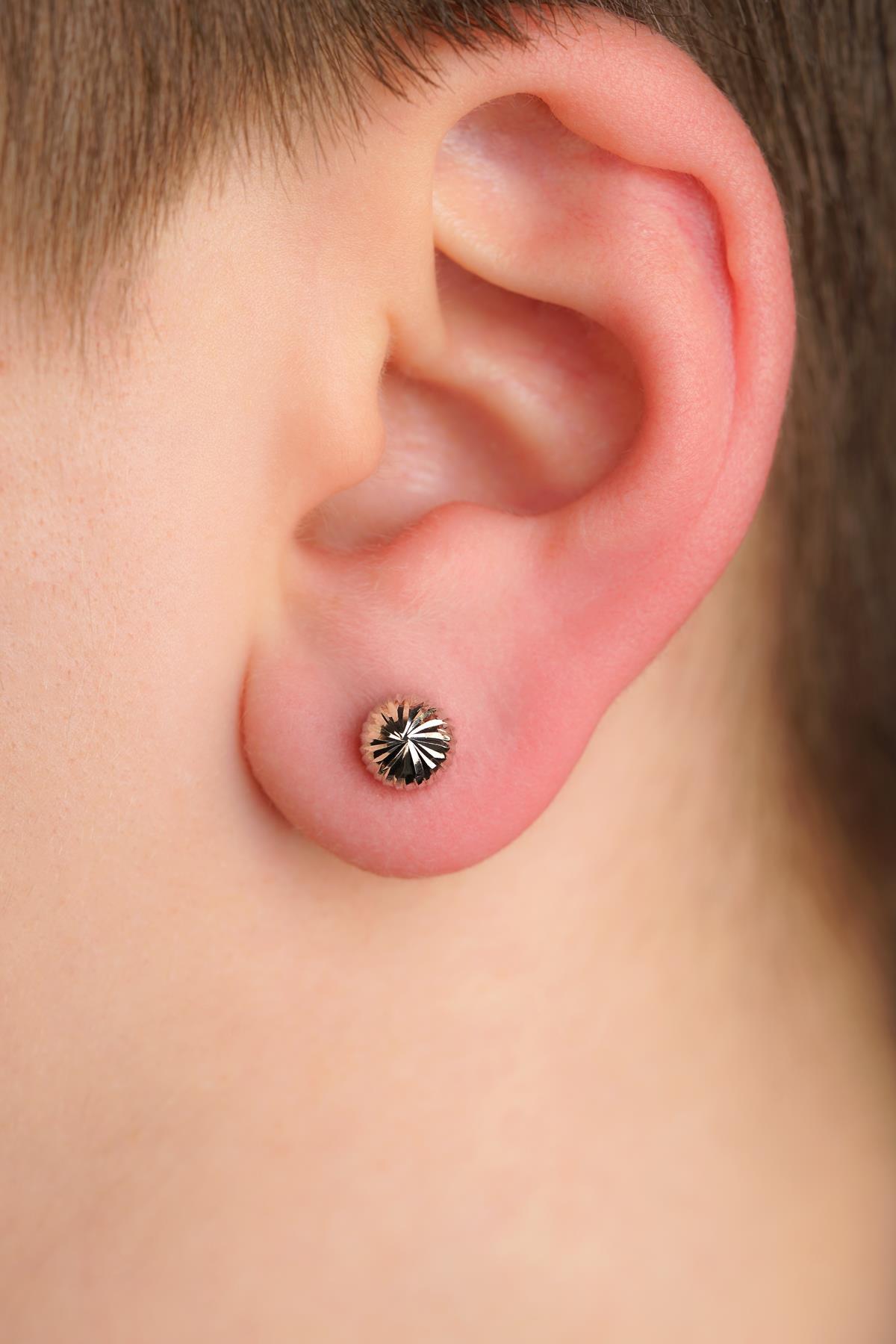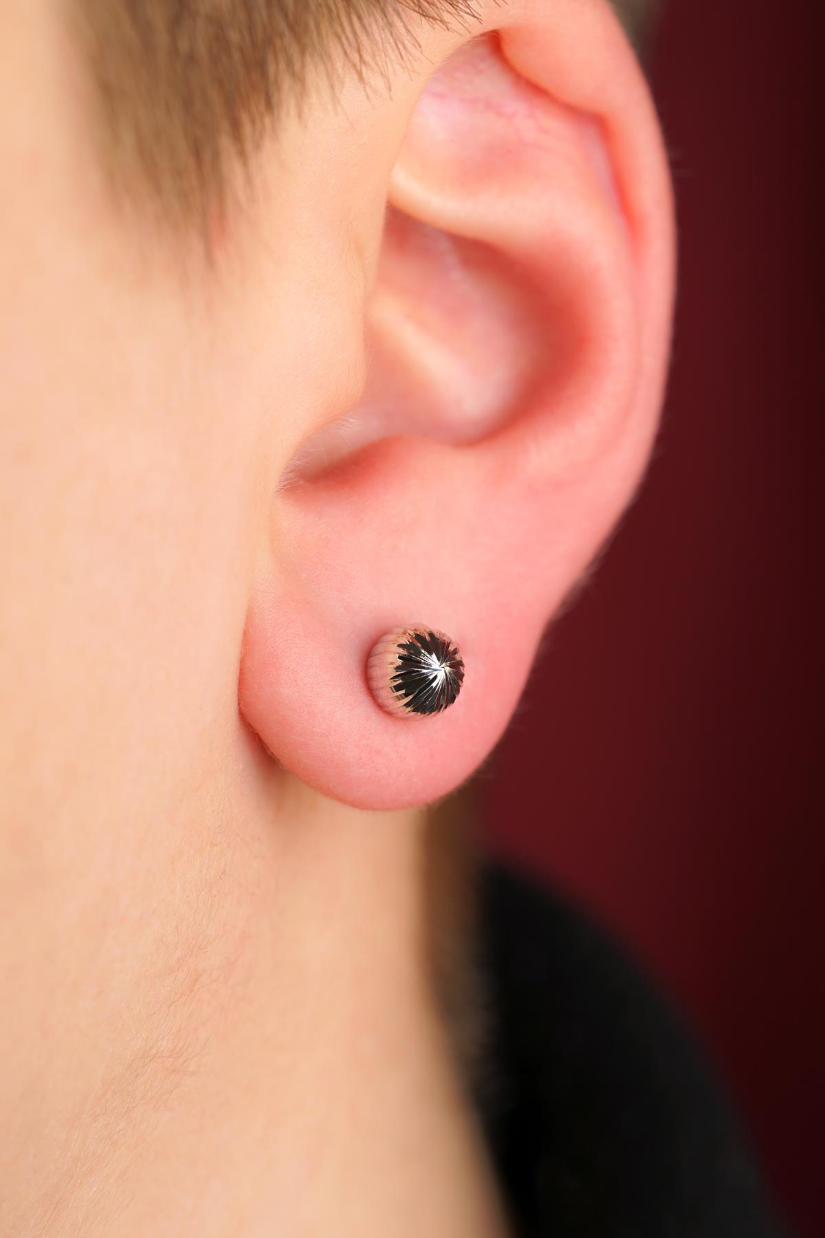14 Ayar Altın Mini Yuvarlak Top Küpe Erkek
