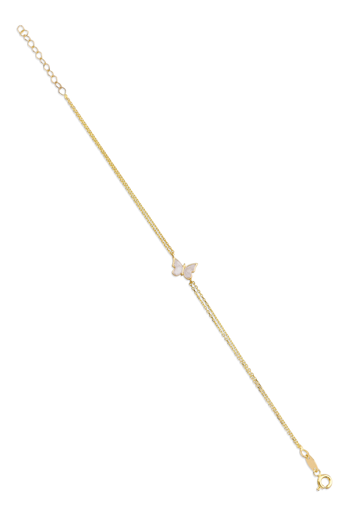 14 Ayar Altın Beyaz Mineli Kelebek Bileklik