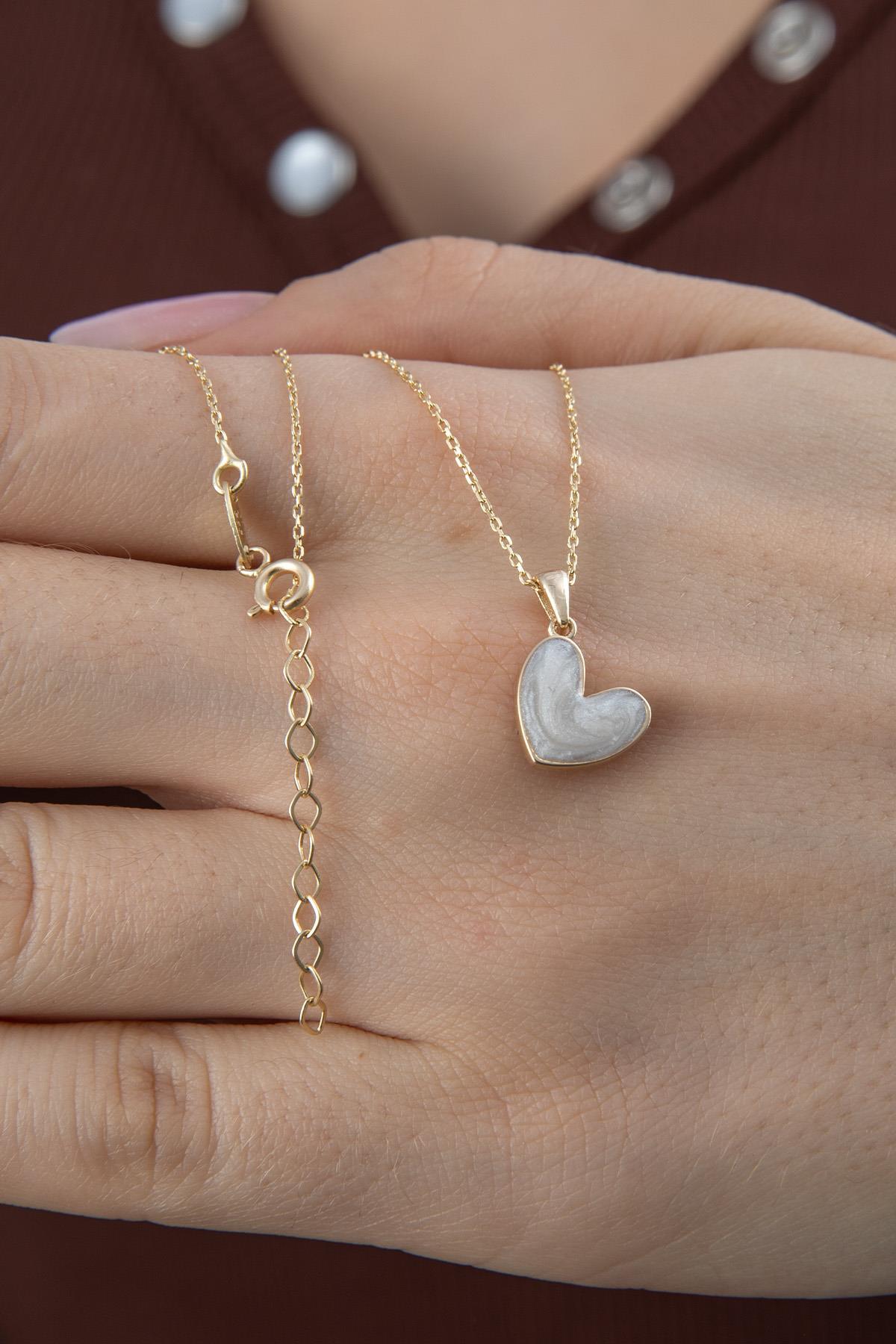 14 Ayar Altın Beyaz Mineli Mini Kalp Kolye