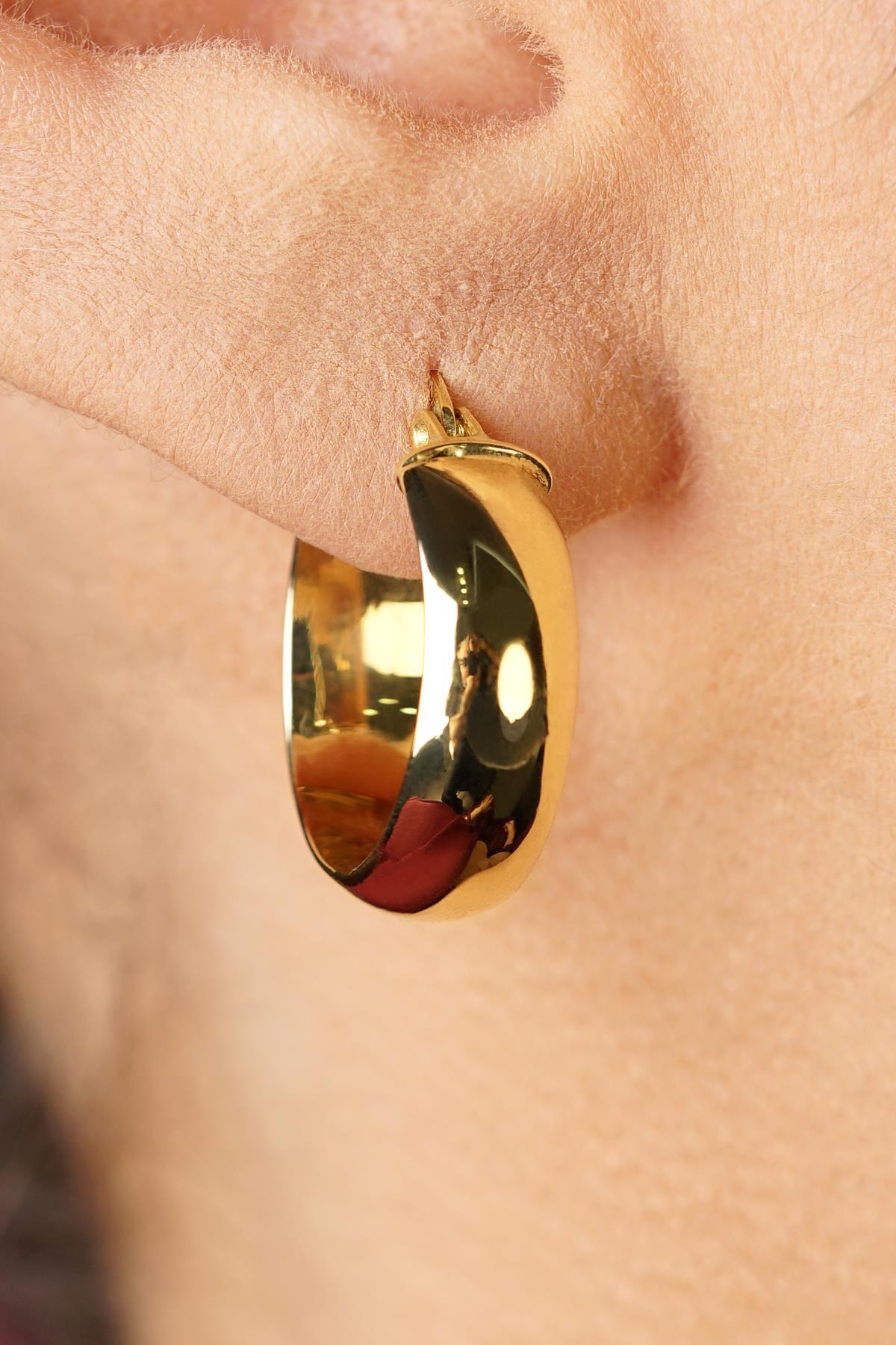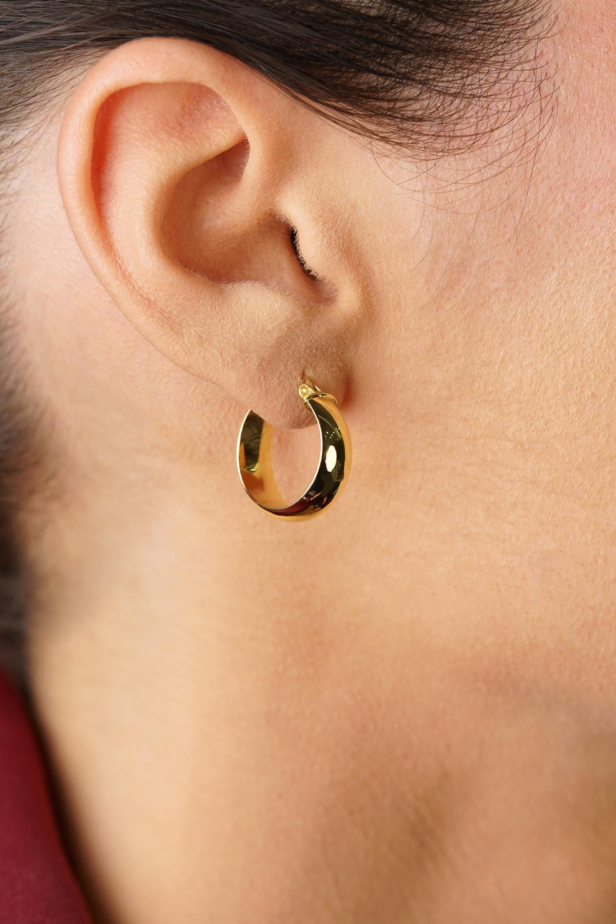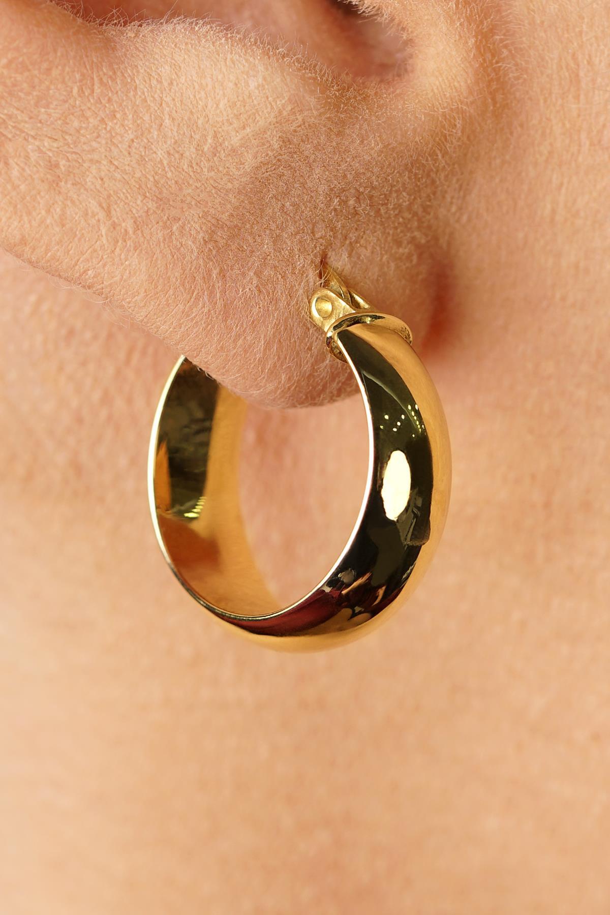 14 Ayar Altın Bombeli Geniş Halka Küpe