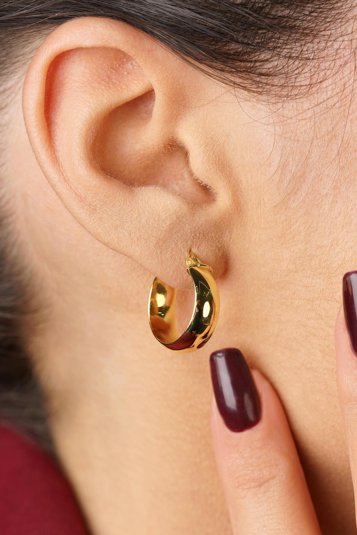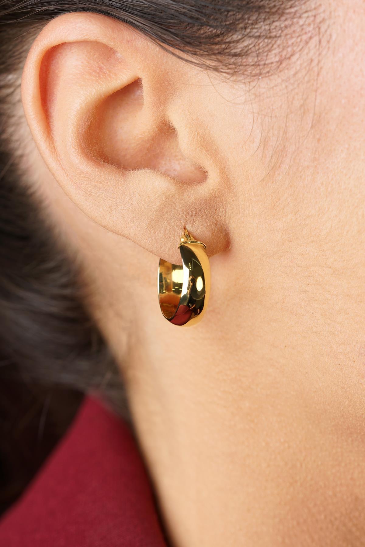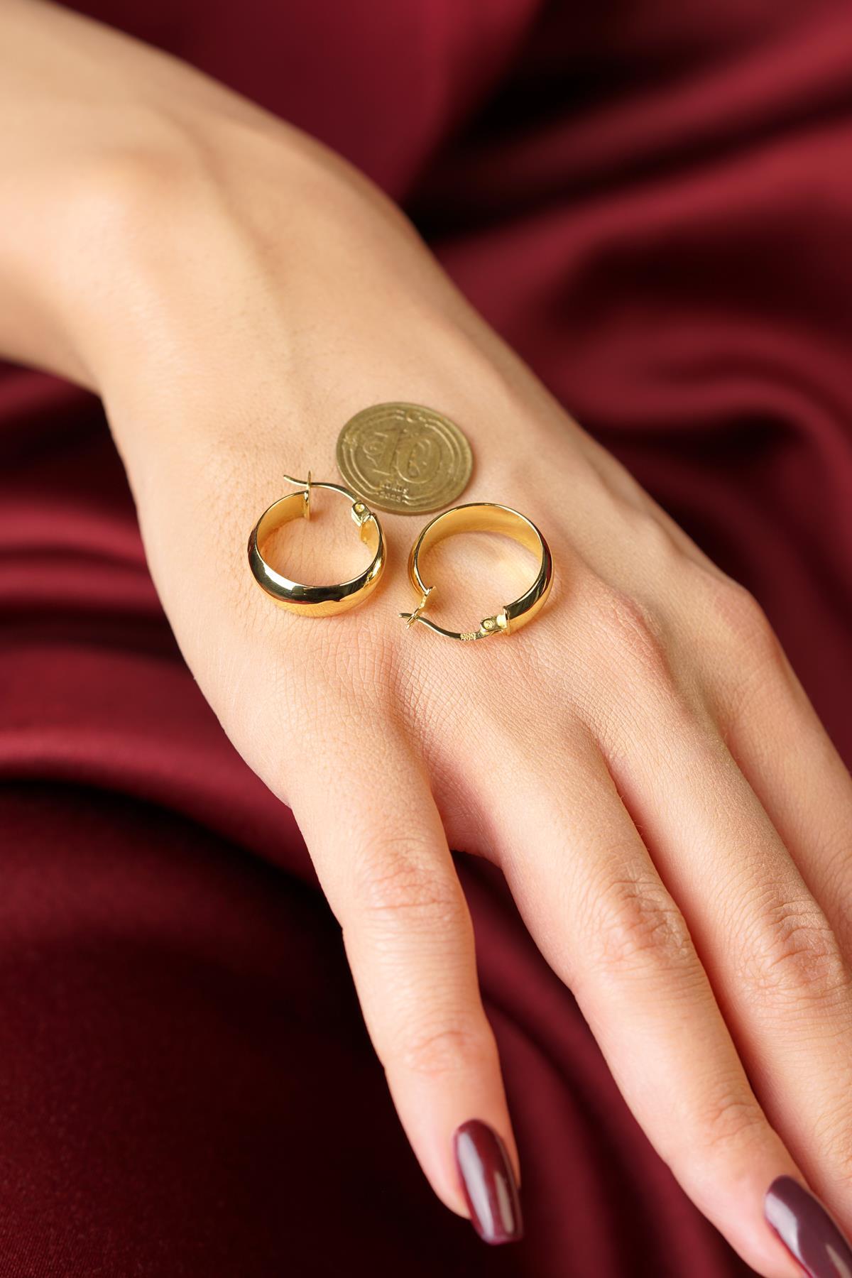 14 Ayar Altın Bombeli Geniş Halka Küpe