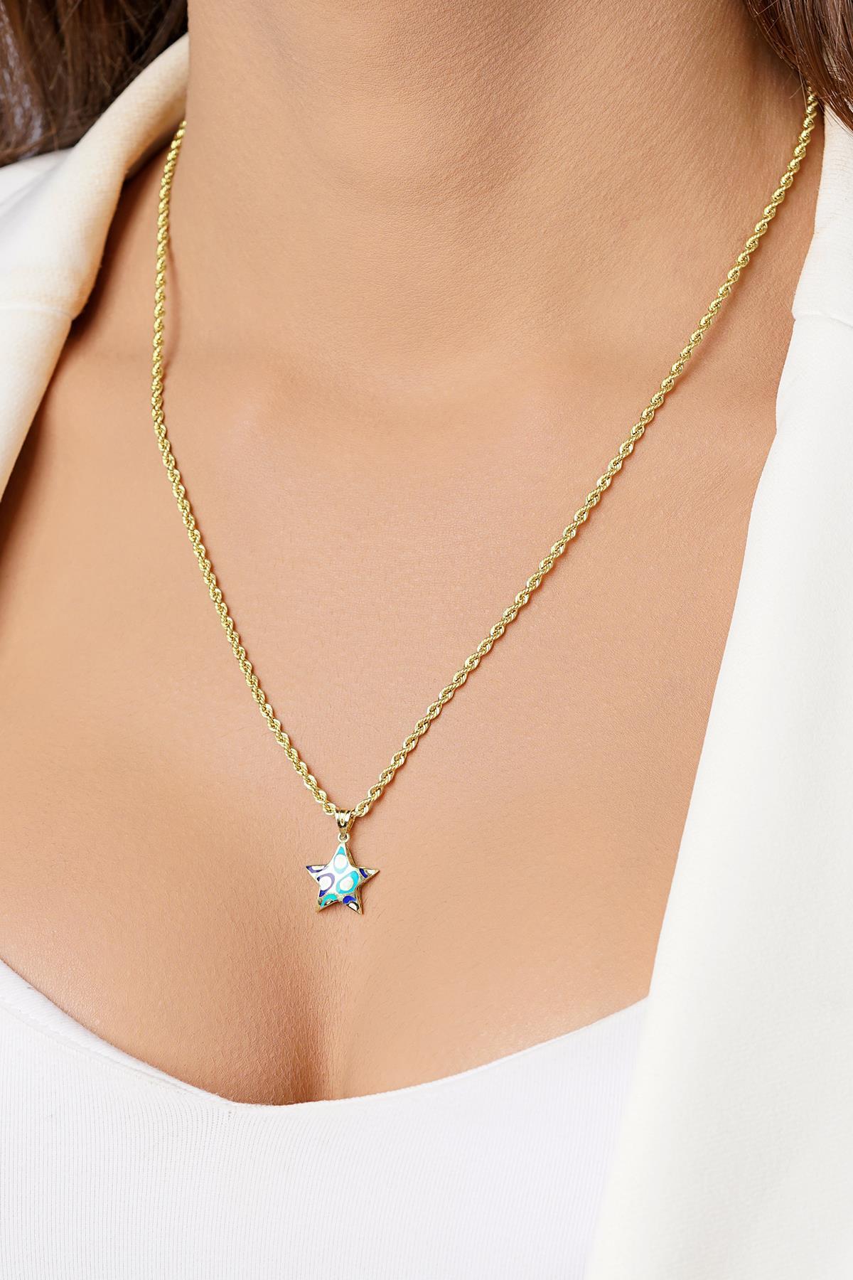 14 Ayar Altın Burgu Halat Zincirli Renkli Yıldız Kolye