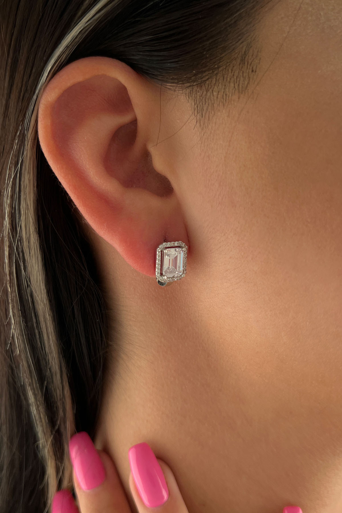 14 Ayar Altın Baget Taşlı Küpe Beyaz