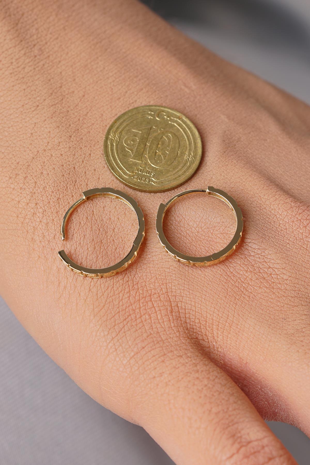 14 Ayar Altın Yunan Desenli Halka Küpe