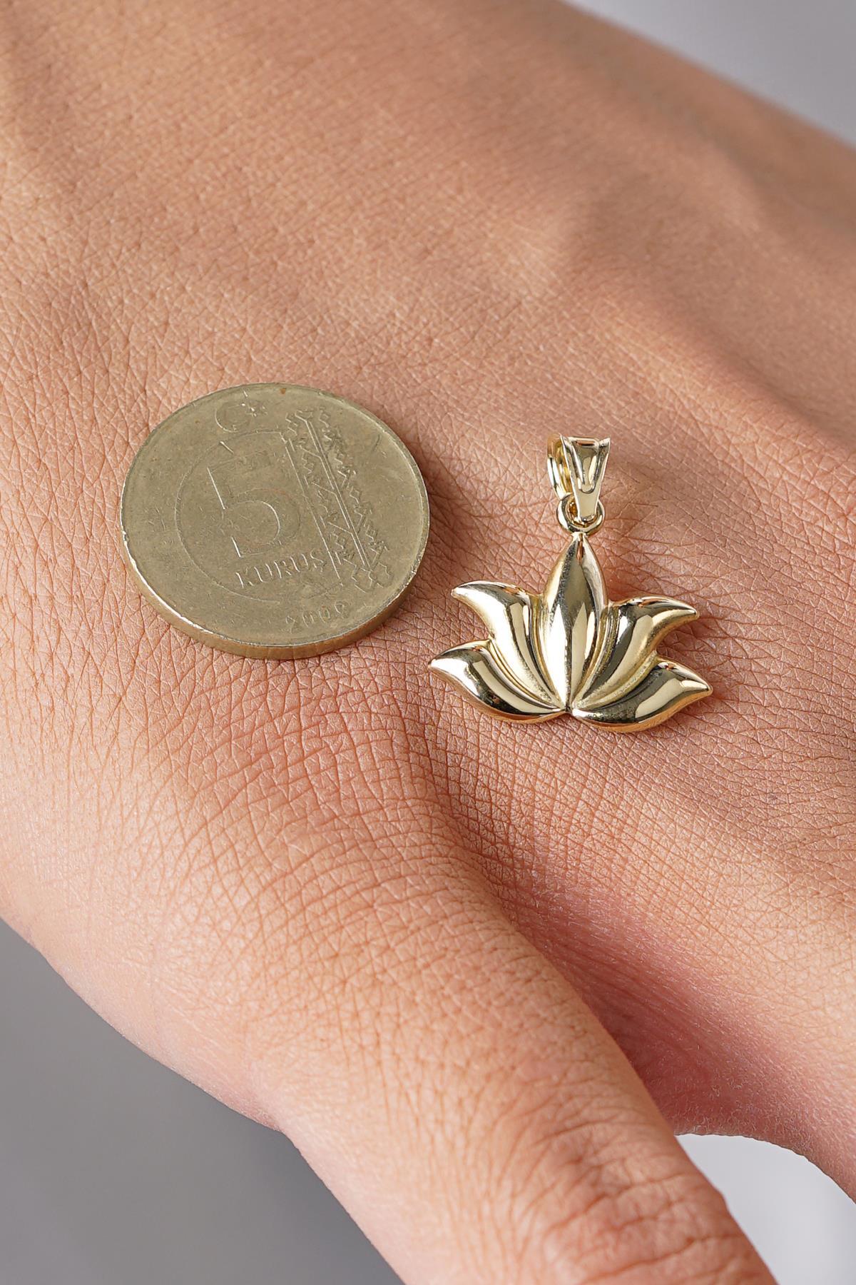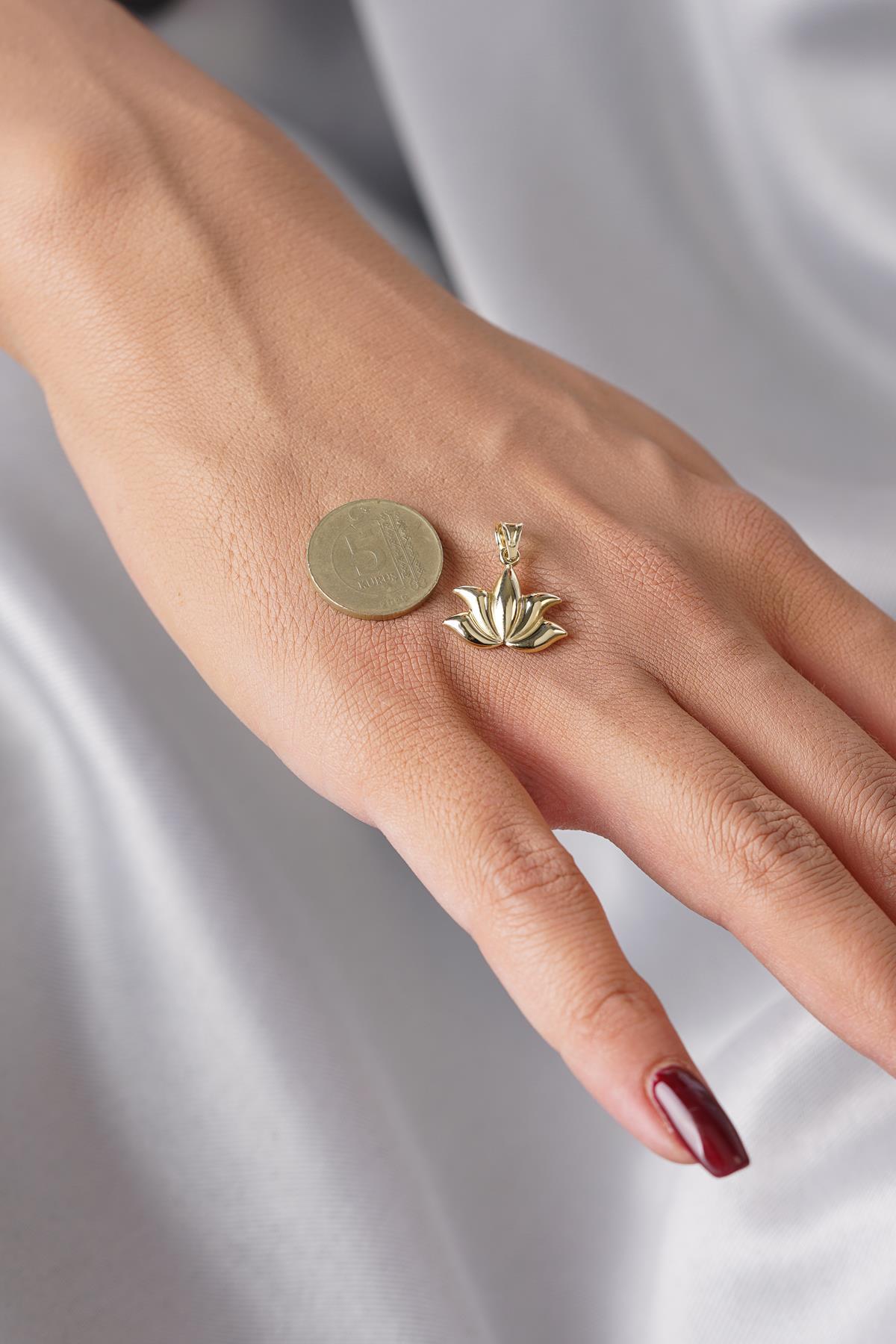 14 Ayar Altın Büyük Lotus Kolye Ucu