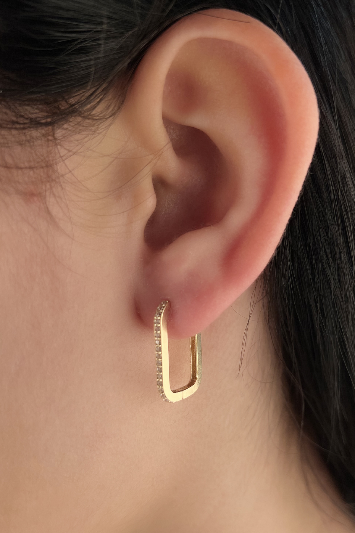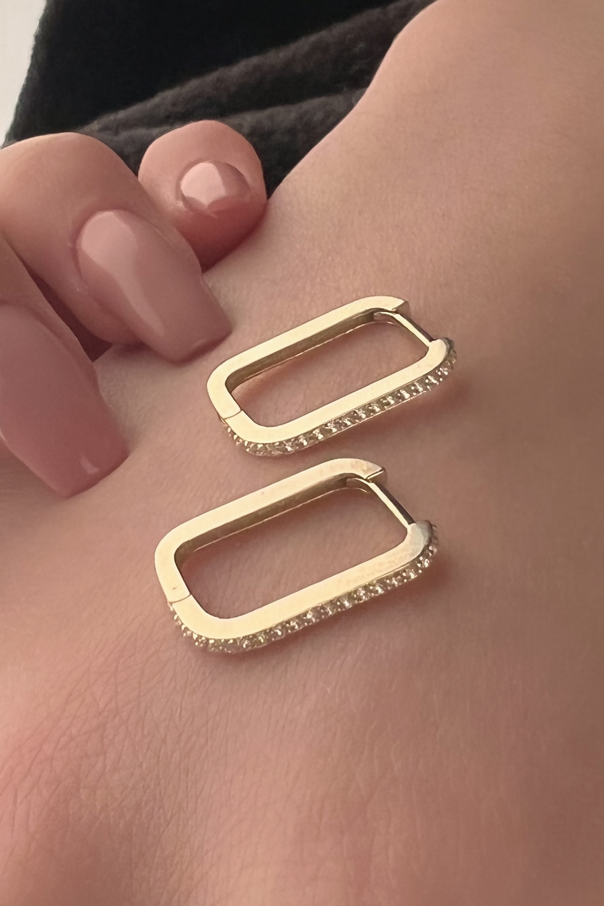 14 Ayar Altın Büyük Taşlı Dikdörtgen Küpe