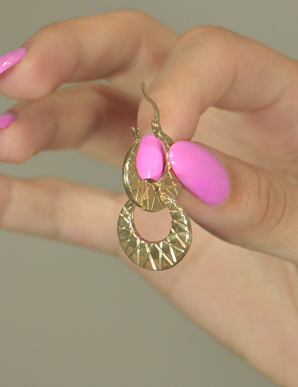 14 Ayar Altın Çapraz Çizgili Halka Küpe