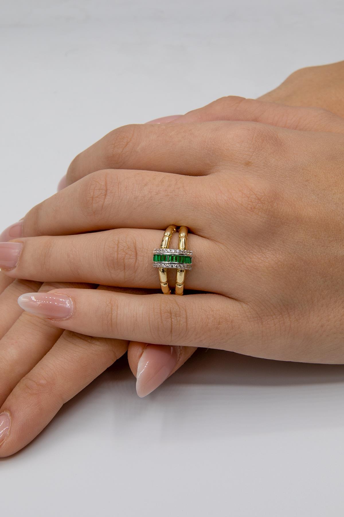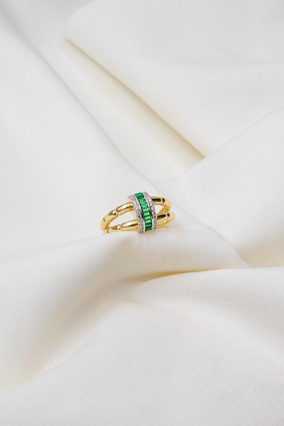 14 Ayar Altın Çift Boğumlu Yeşil Şerit Baget Yüzük