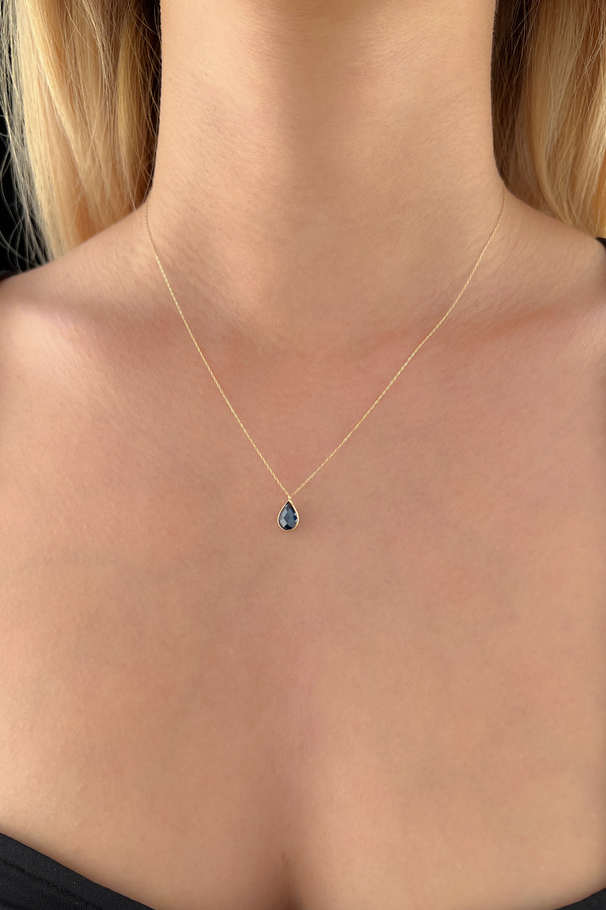 14 Ayar Altın Damla Taş Safir Kolye