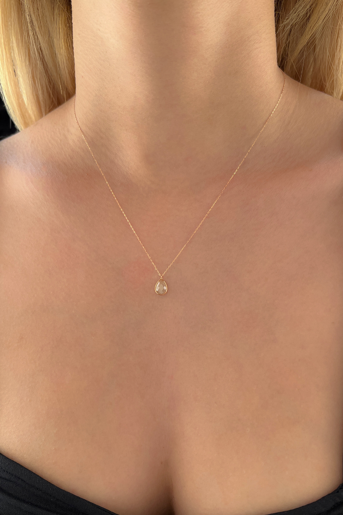 14 Ayar Altın Damla Taş Sarı Kuvars Kolye