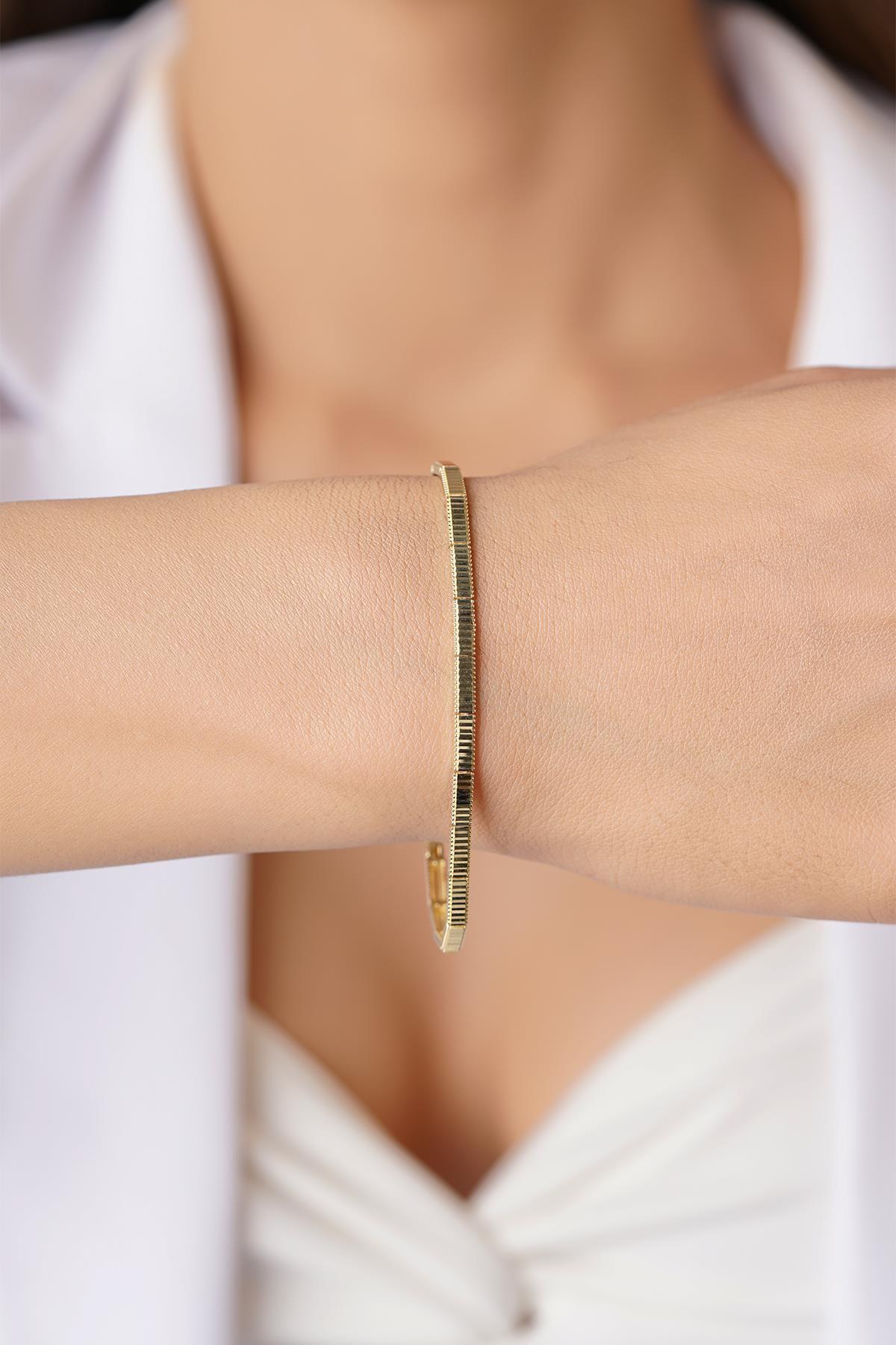 14 Ayar Altın Taşlı İnce Oval Modern Bileklik