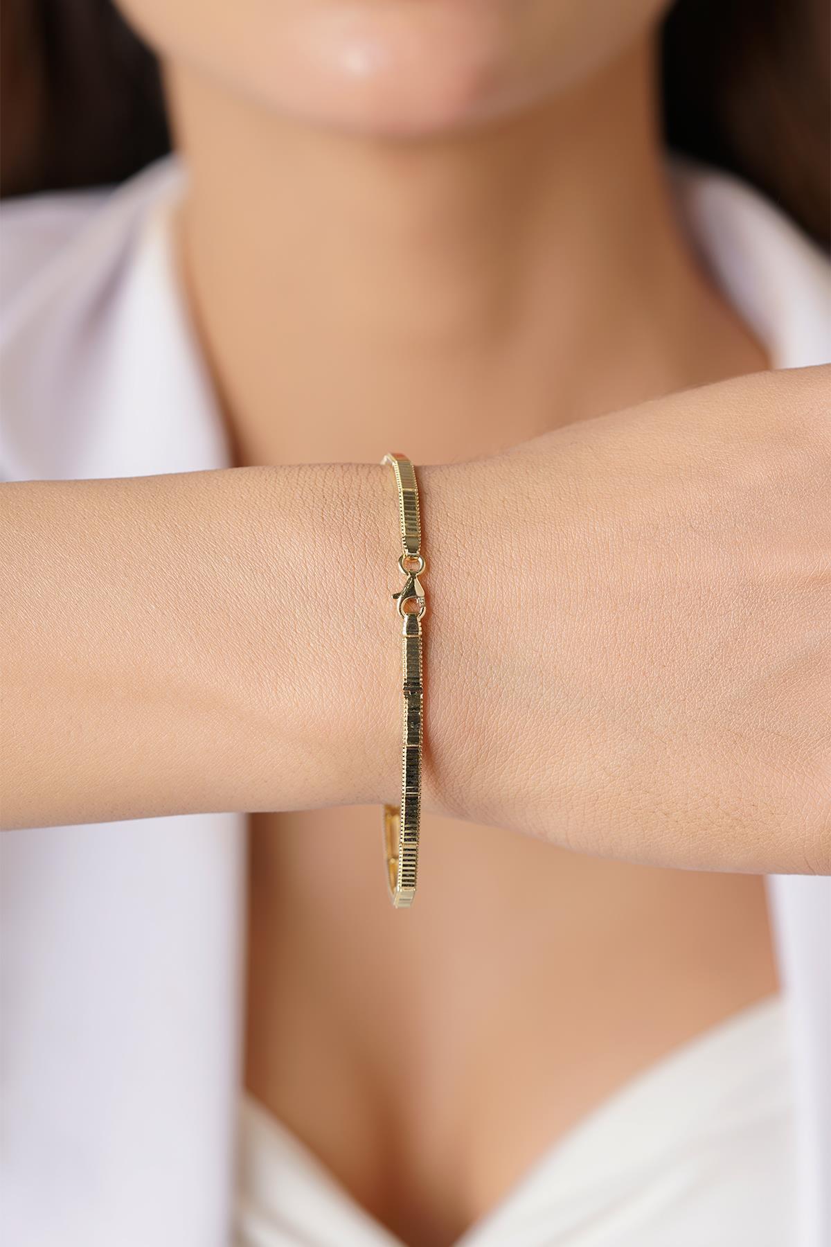 14 Ayar Altın Desenli İnce Ajda Bileklik