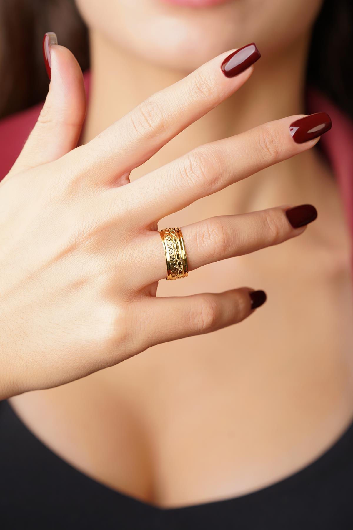 1. Satın alacağınız yüzüğü takmayı düşündüğünüz parmağa daha önceden takmış olduğunuz bir yüzük varsa onu elinize alın,