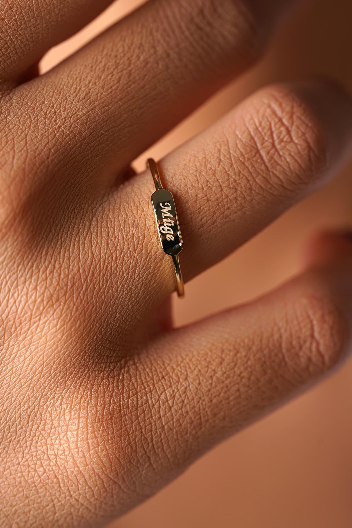 14 Ayar Altın Dikdörtgen Plaka Yüzük