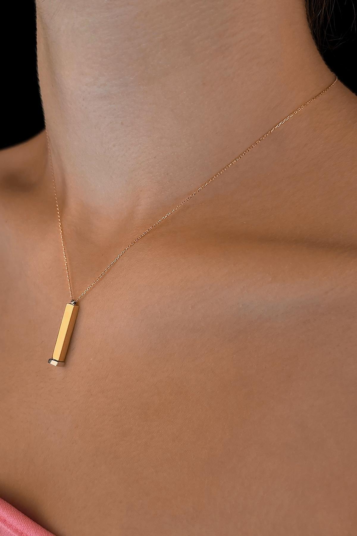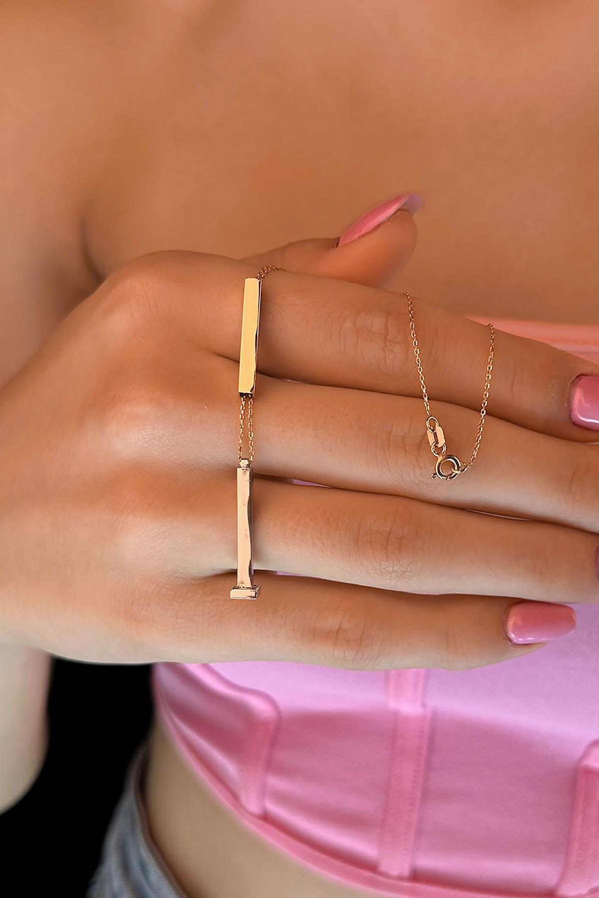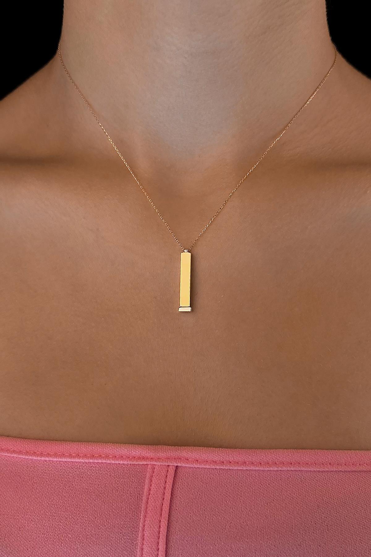 14 Ayar Altın Dikey Dikdörtgen Objeli Kolye