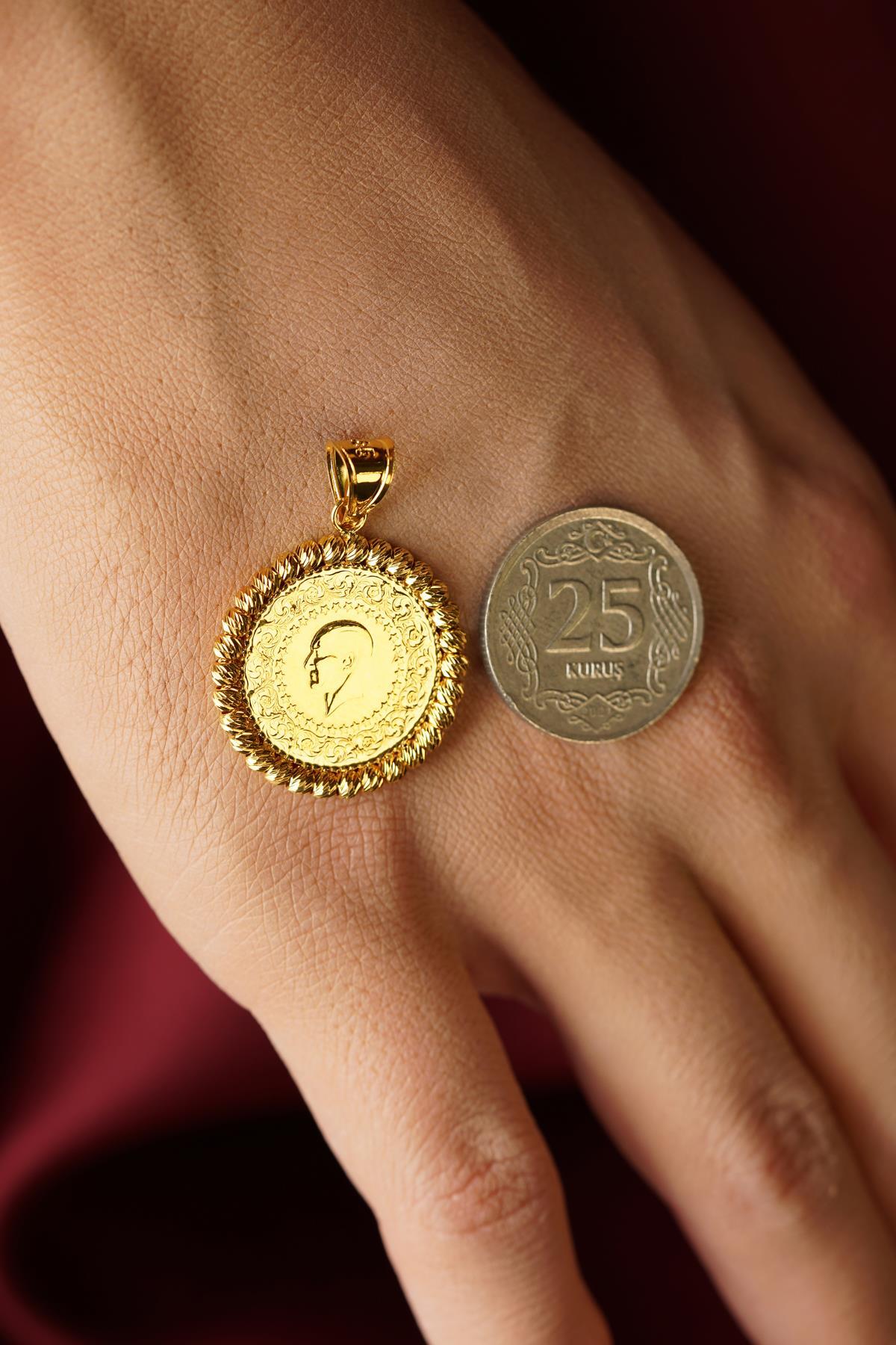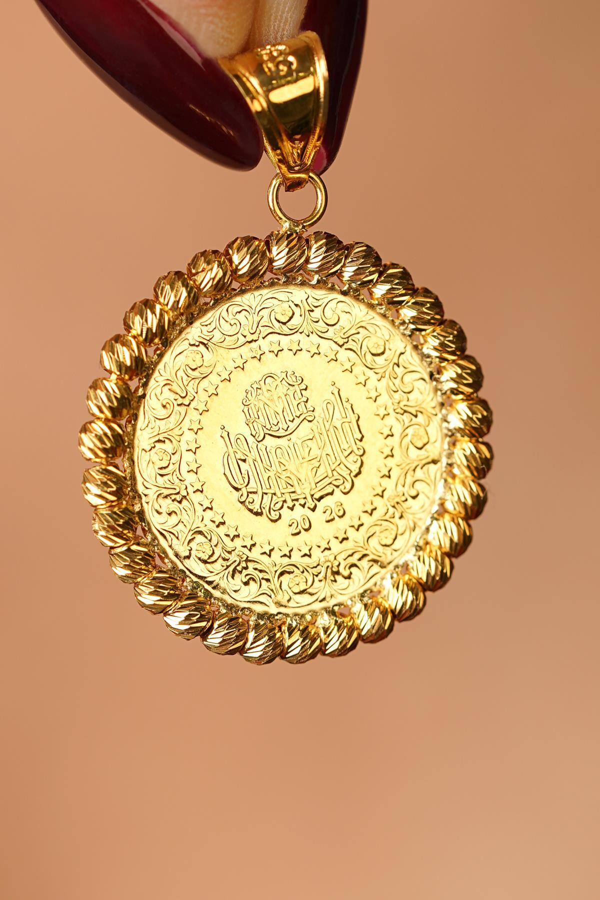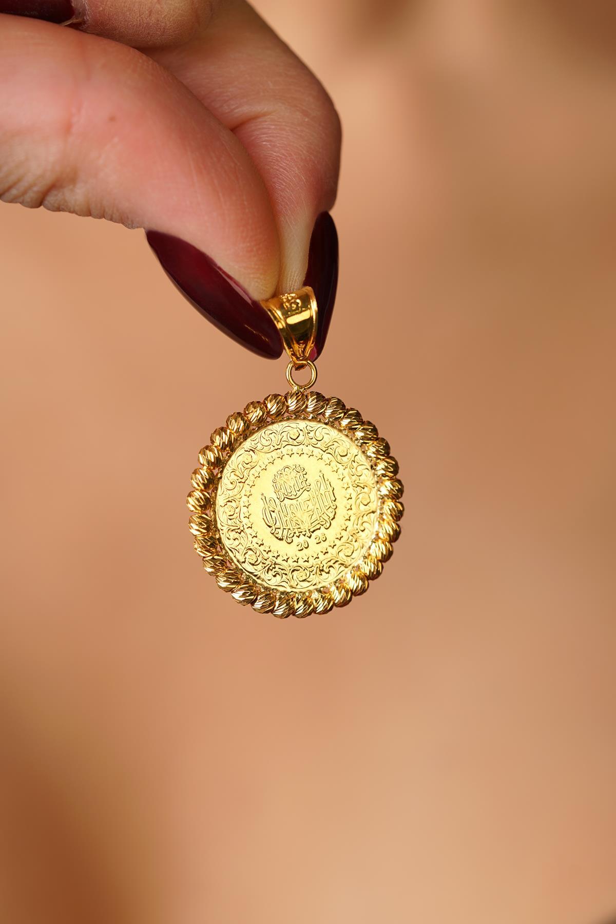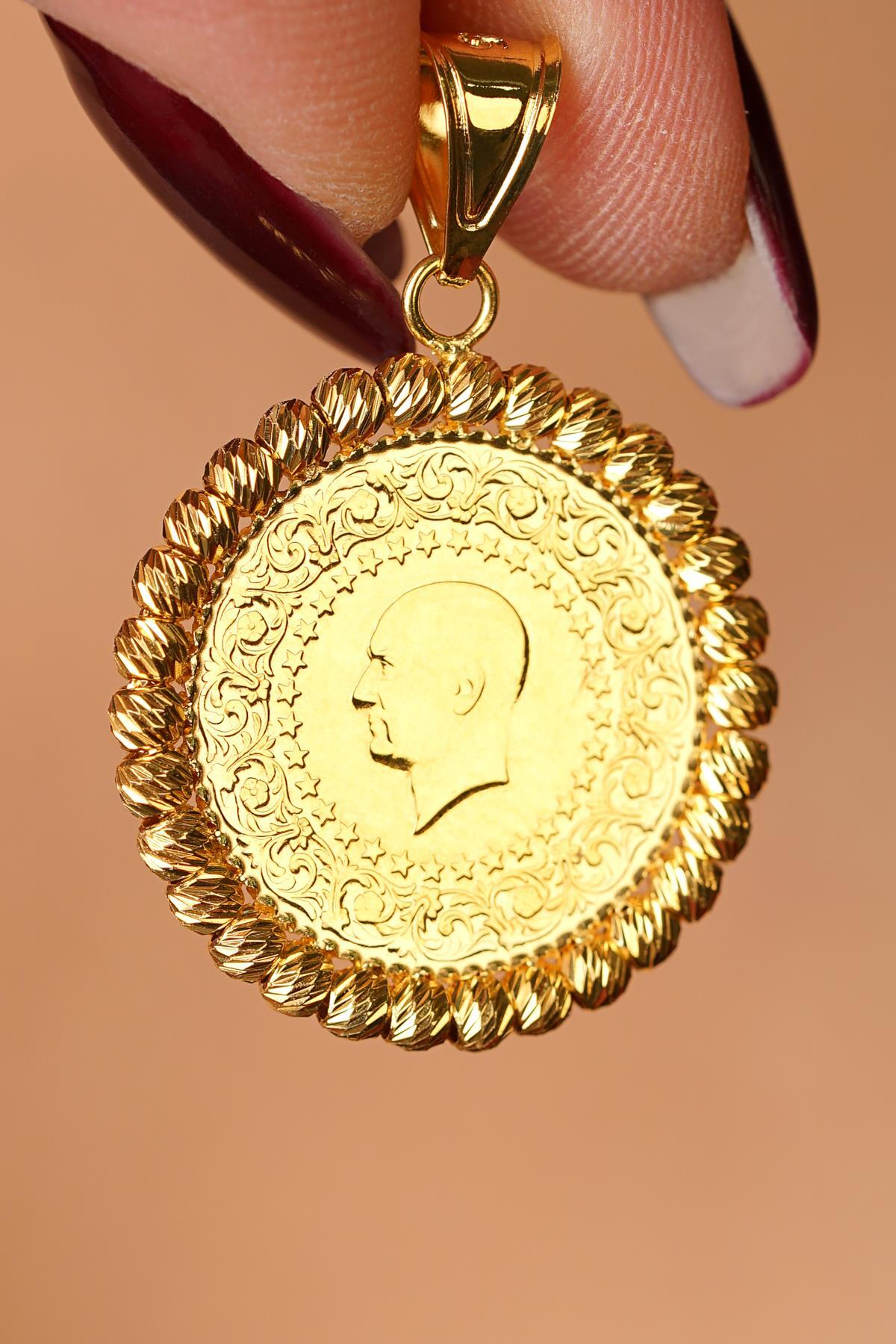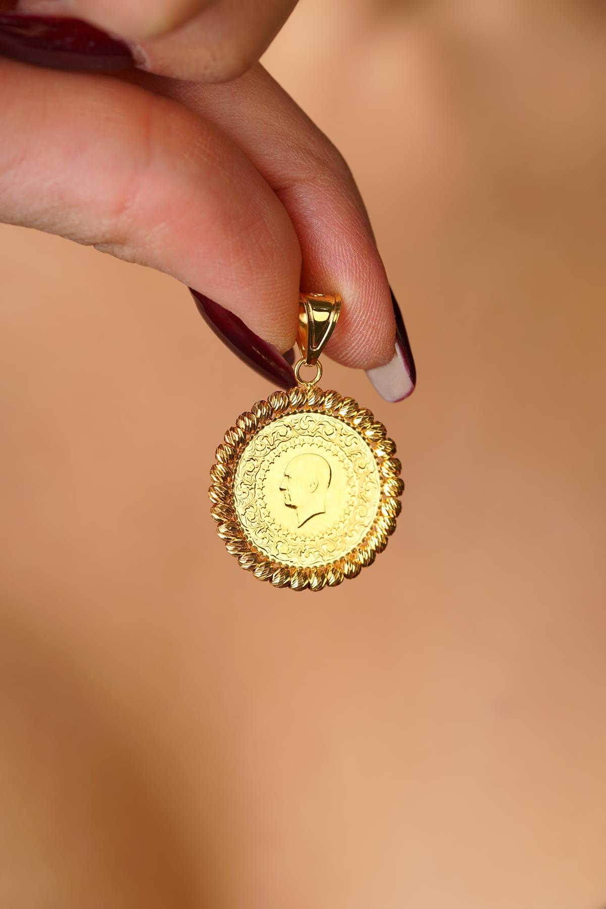 14 Ayar Altın Dorika Top Detaylı Çeyrek Altınlı Kolye Ucu