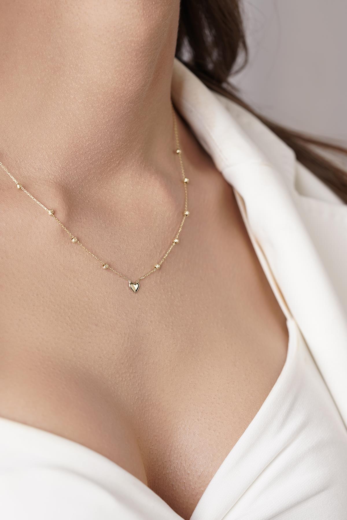 14 Ayar Altın Dorika Top Detaylı Kalp Kolye