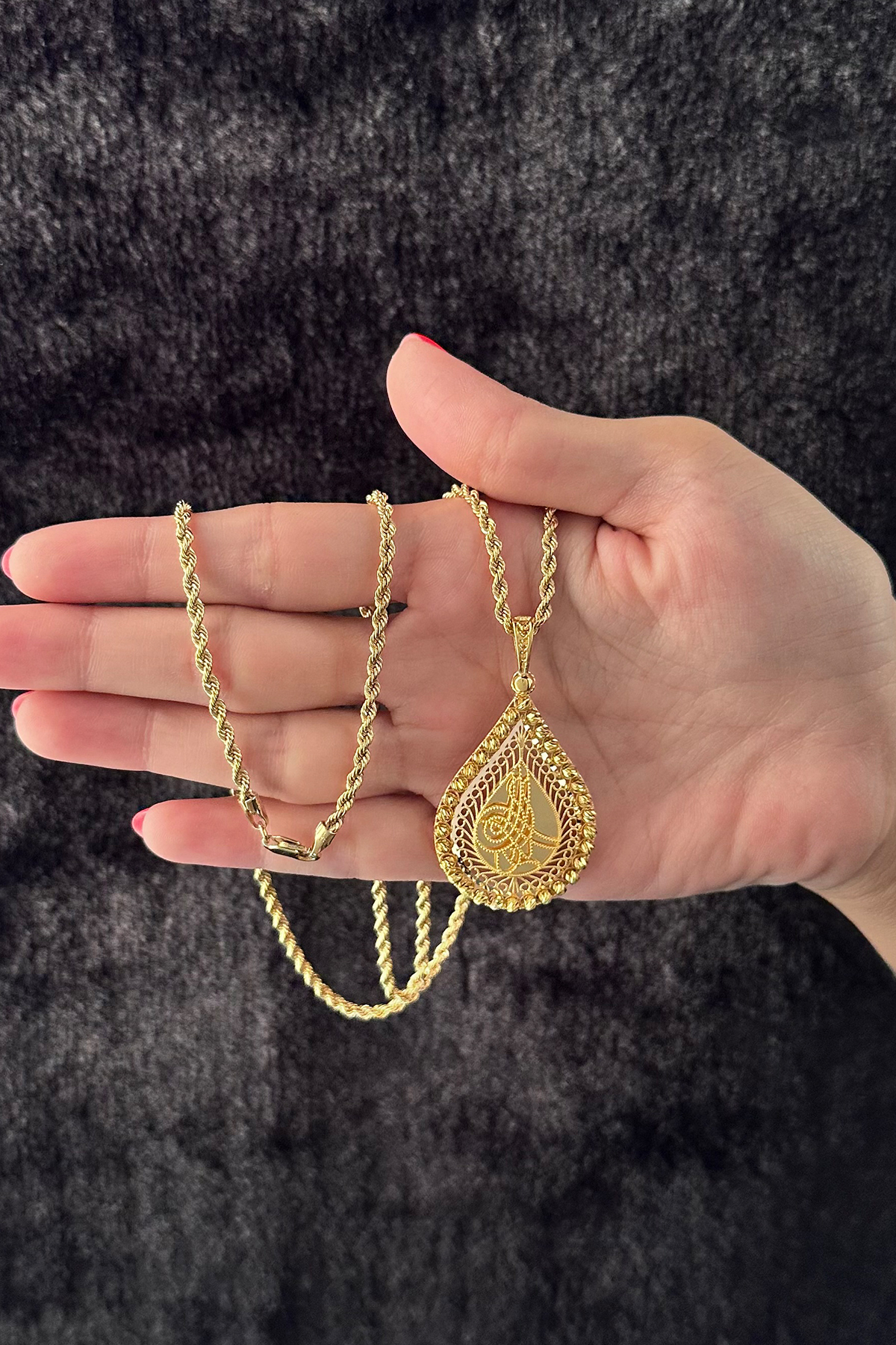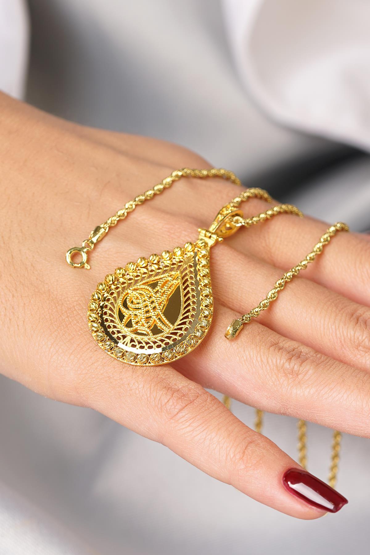 14 Ayar Altın Dorika Top Detaylı Tuğra Kolye