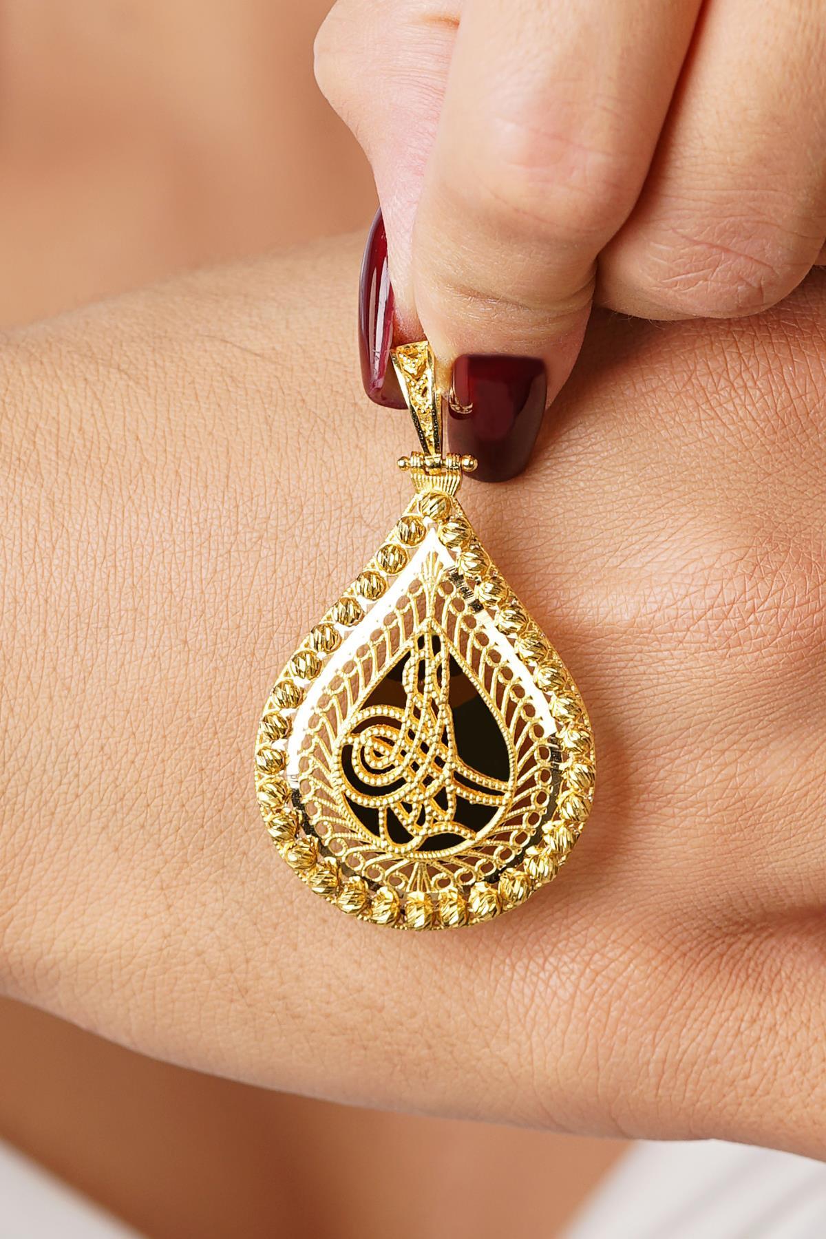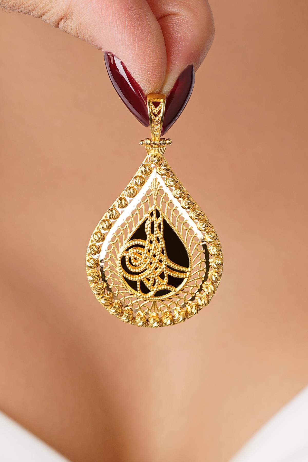 14 Ayar Altın Dorika Top Detaylı Tuğra Kolye Ucu