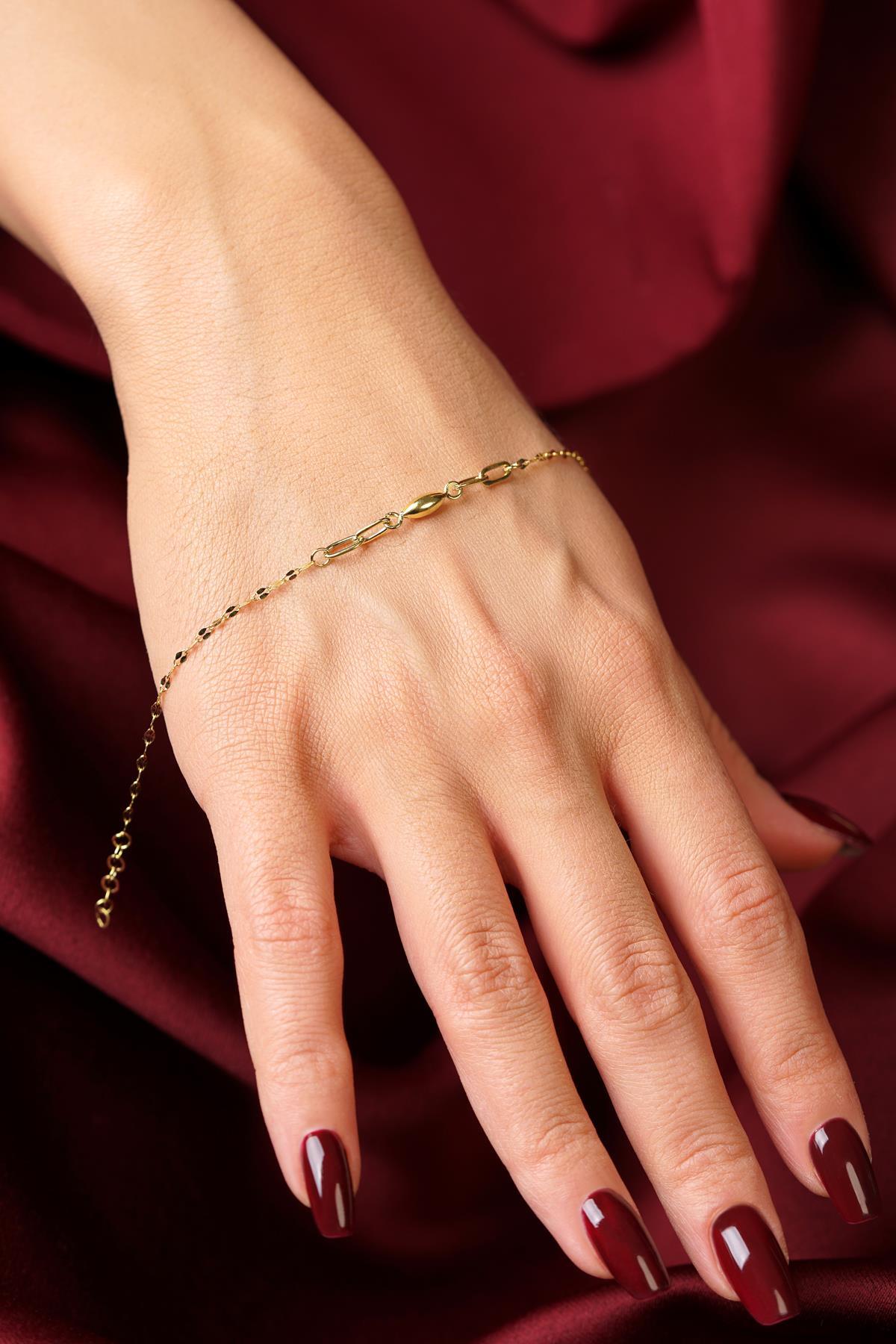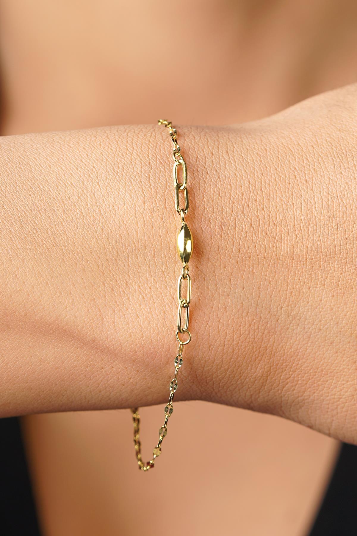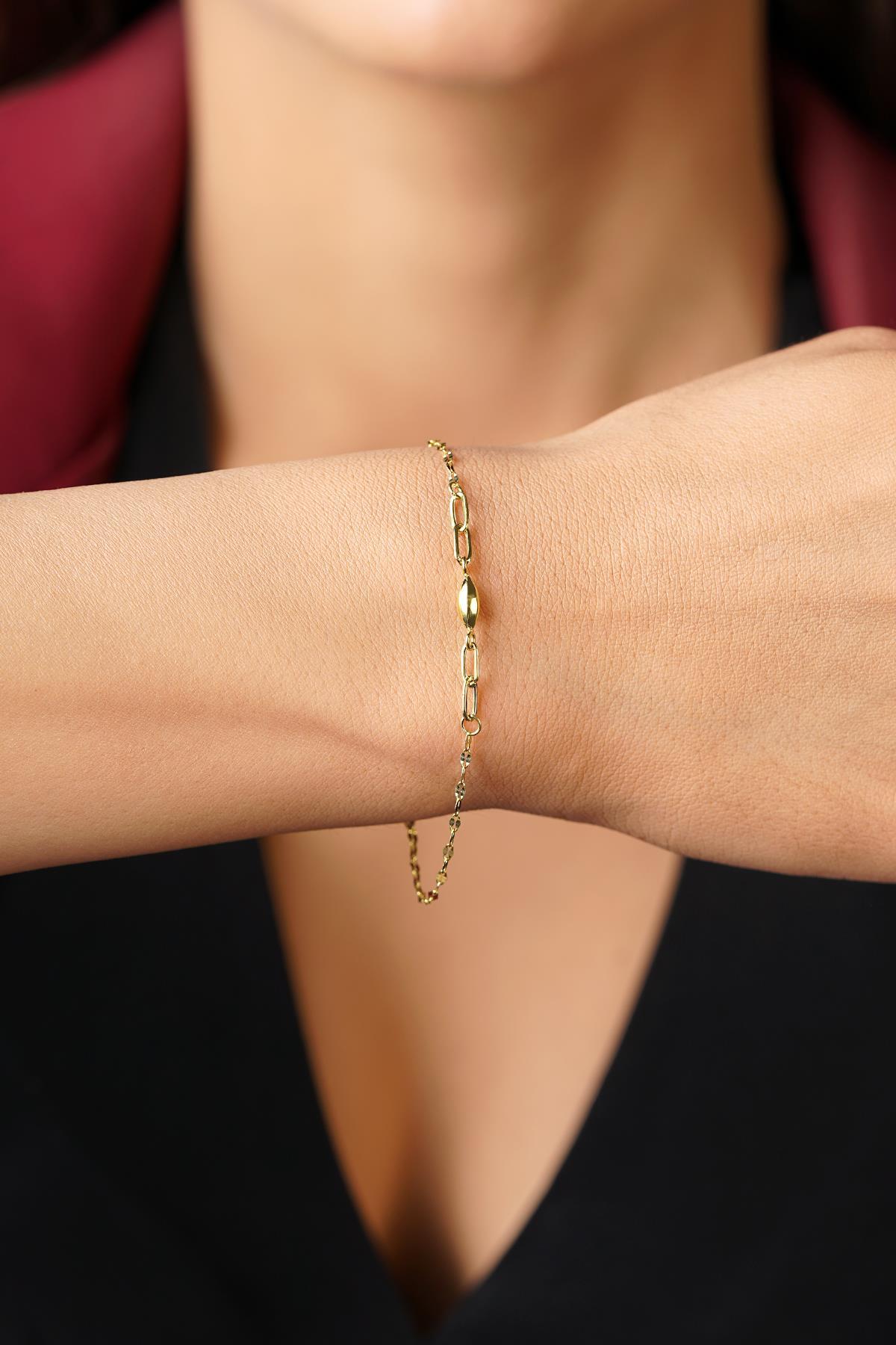 14 Ayar Altın Düz Badem Aynalı Zincir Bileklik