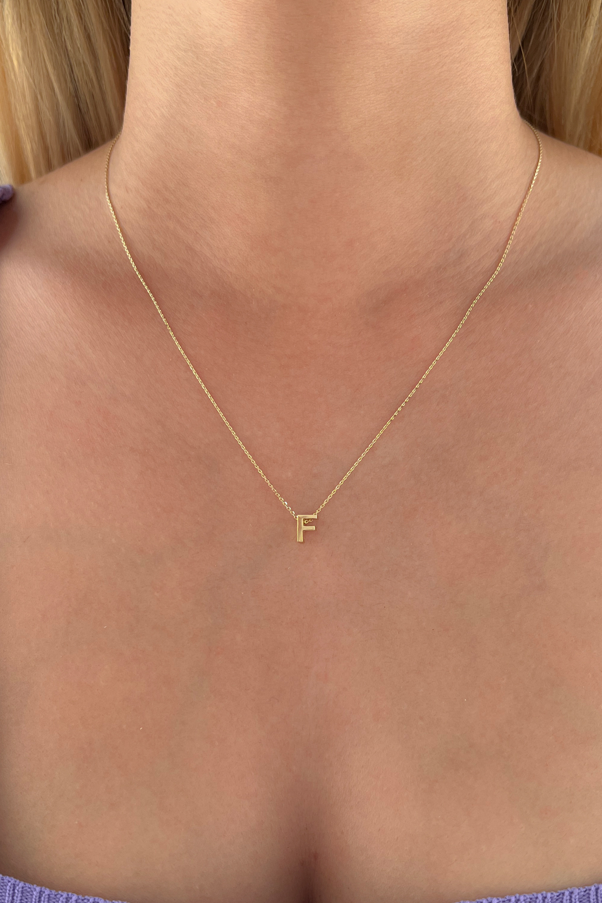 14 Ayar Altın Taşlı Ş Harfli Kolye