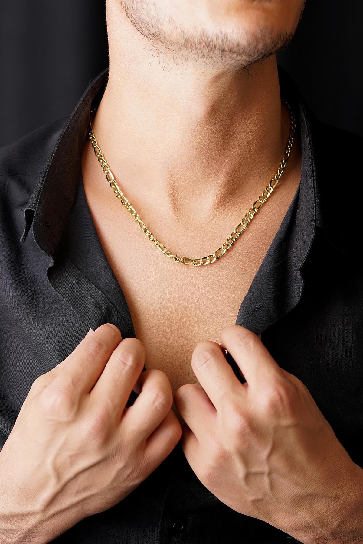 14 Ayar Altın Figaro Yassı Zincir Erkek Kolye