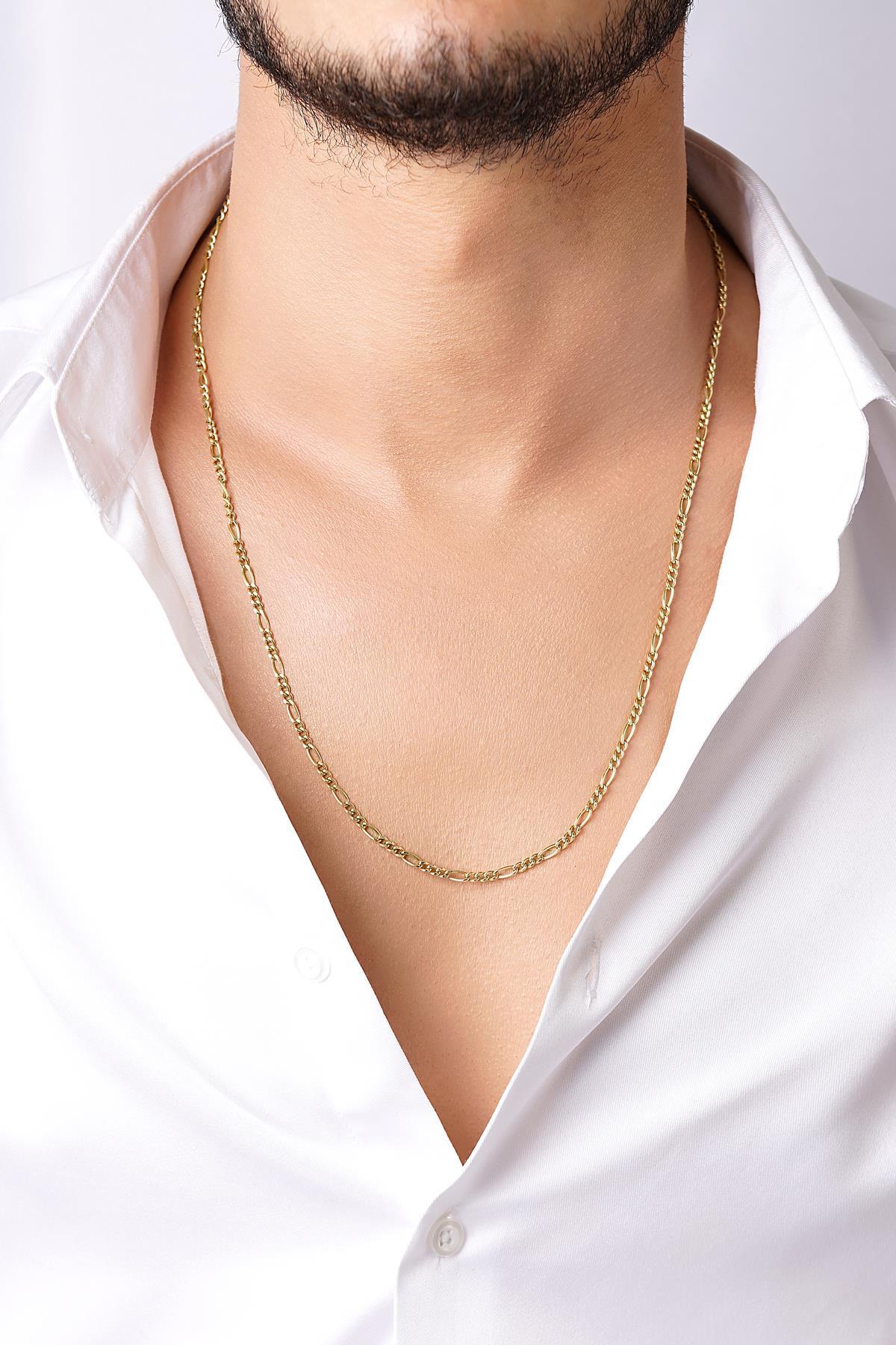 14 Ayar Altın Figaro Zincir Erkek Kolye 3.50 mm