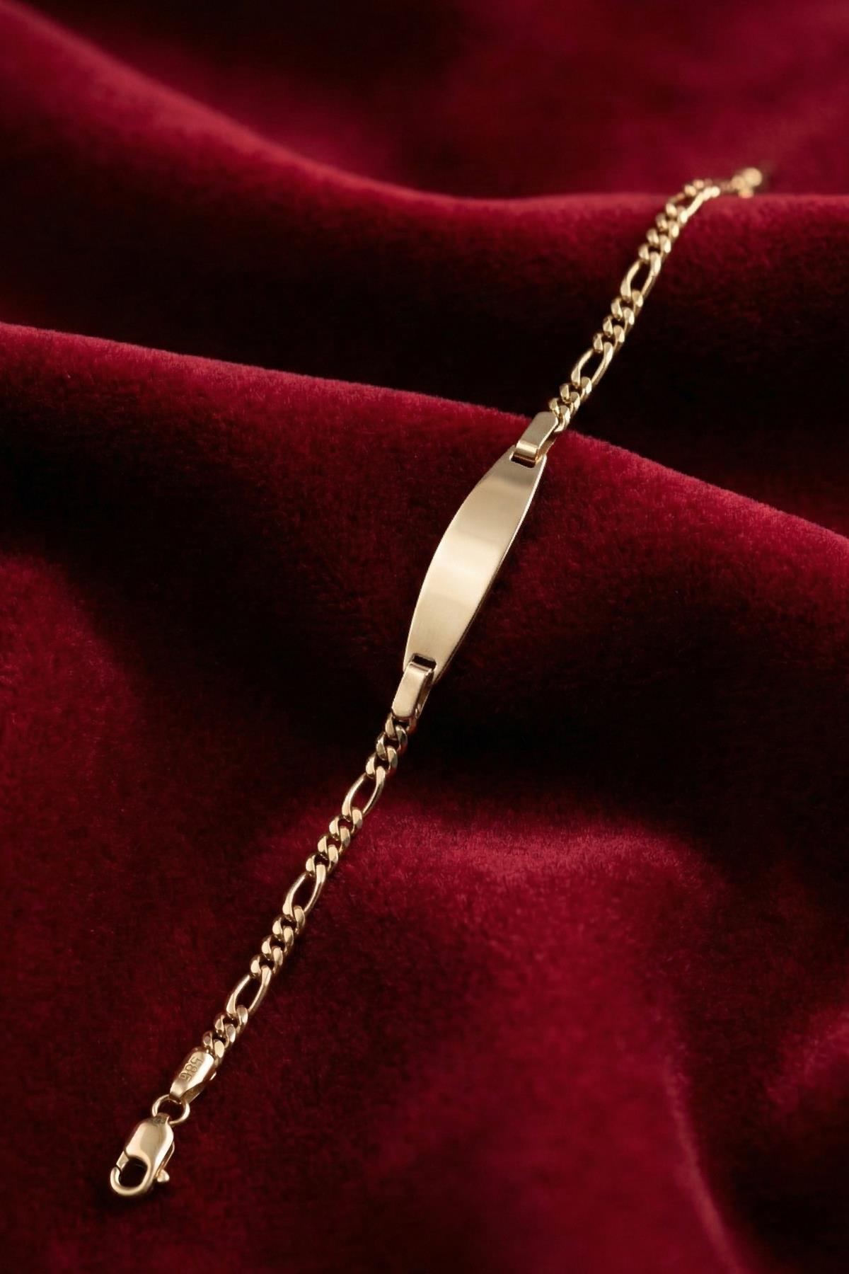 14 Ayar Altın Figaro Zincirli Oval Plaka Bebek Çocuk Künyesi