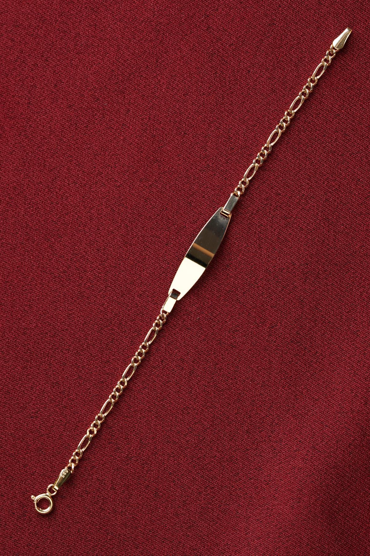 14 Ayar Altın Figaro Zincirde Çocuk Künyesi