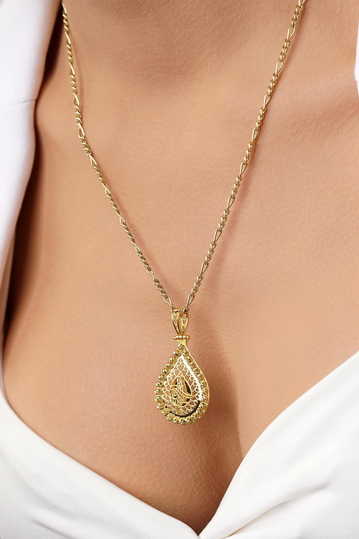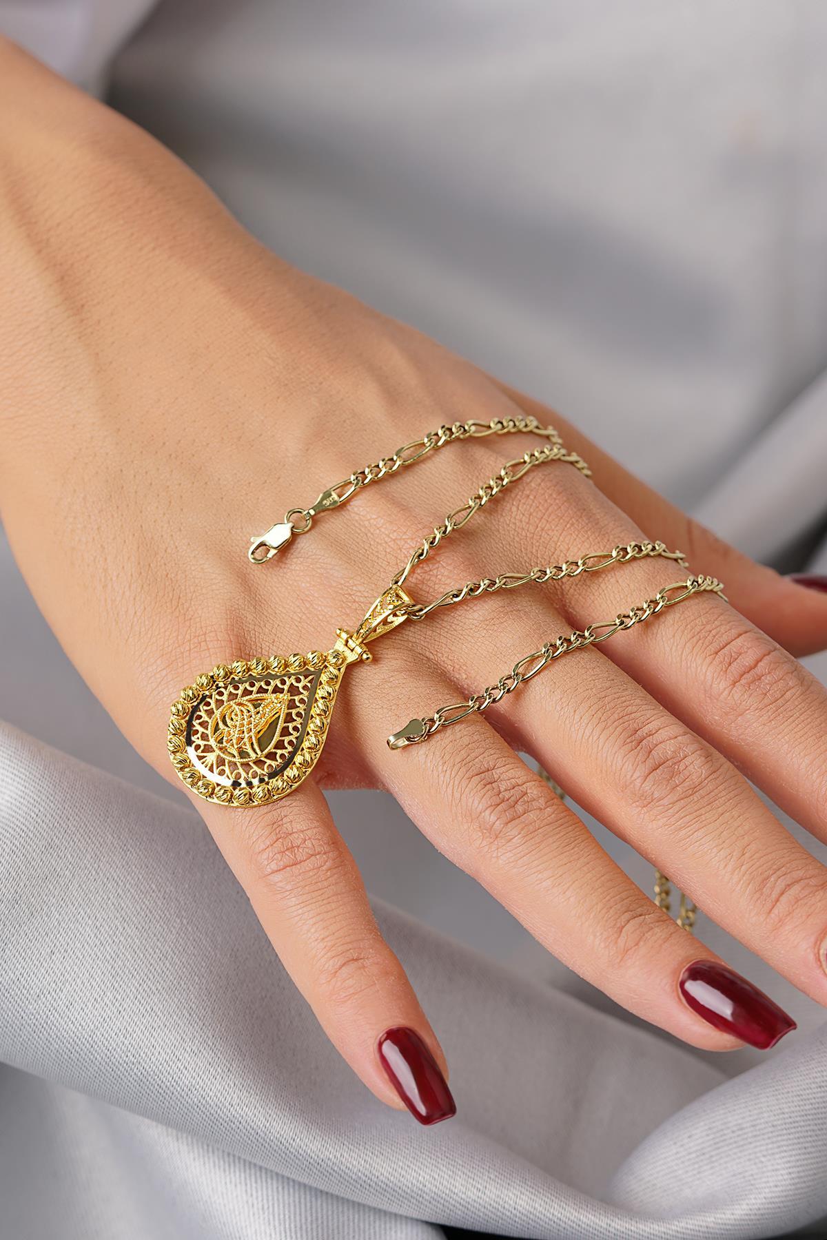 14 Ayar Altın Dorika Top Detaylı Tuğra Kolye