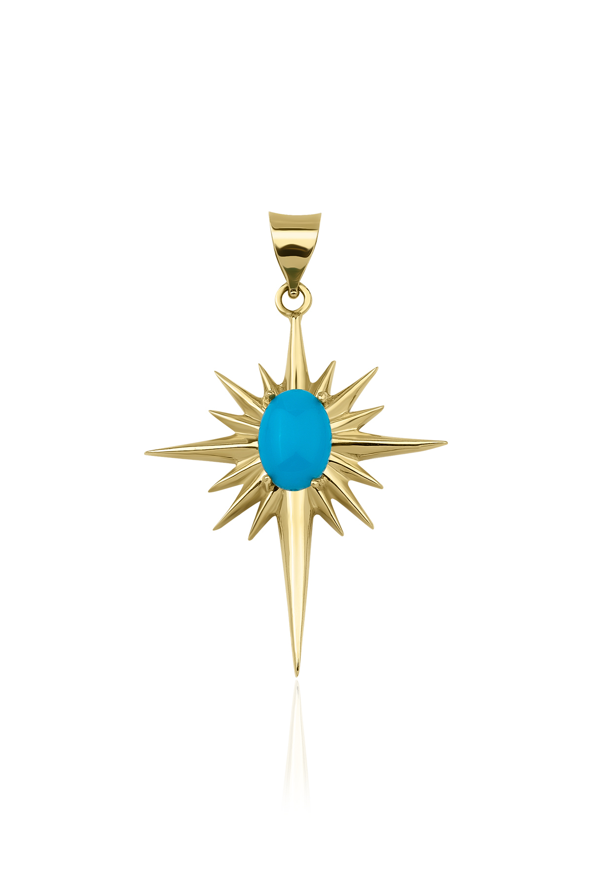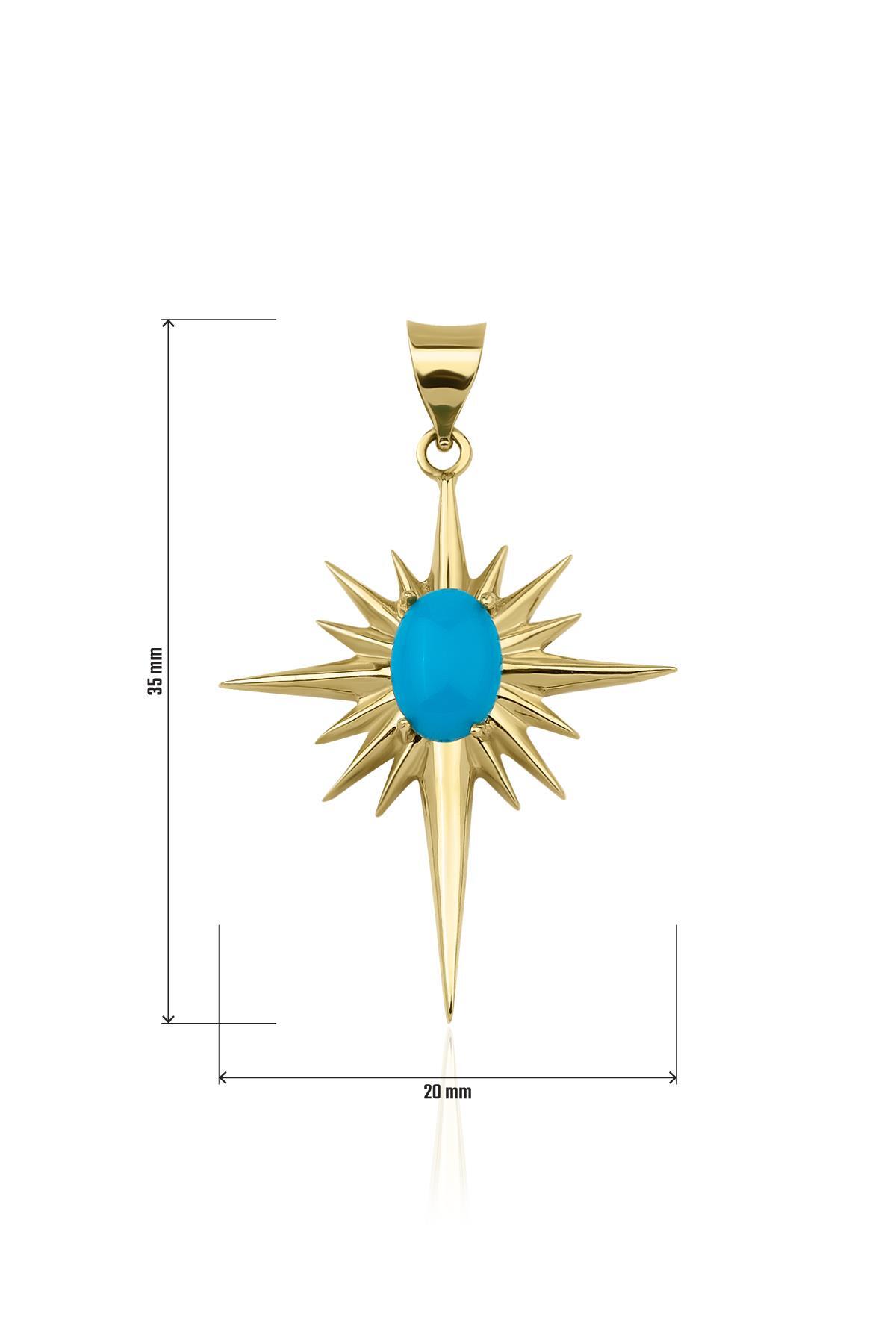 14 Ayar Altın Firuze Detaylı Kutup Yıldızı Kolye Ucu