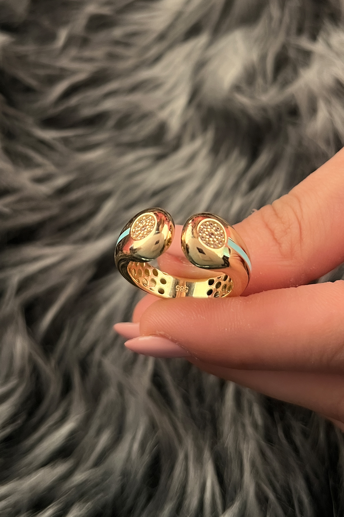 14 Ayar Altın Firuze Şerit Detaylı Taşlı Yüzük