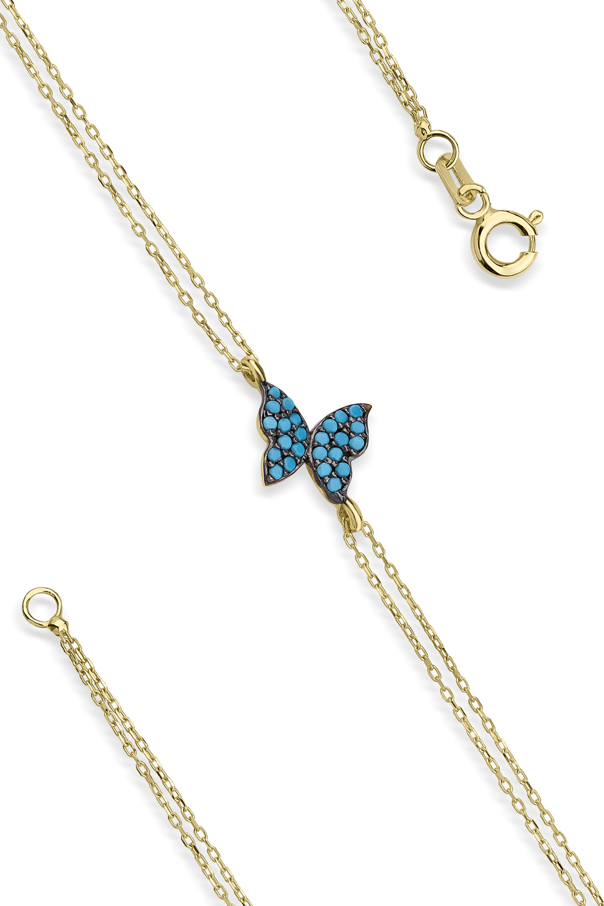 14 Ayar Altın Firuze Taş Detaylı Kelebek Bileklik