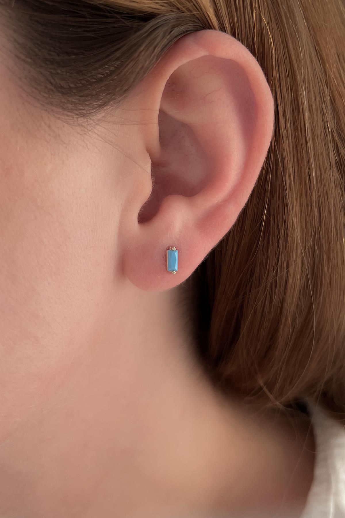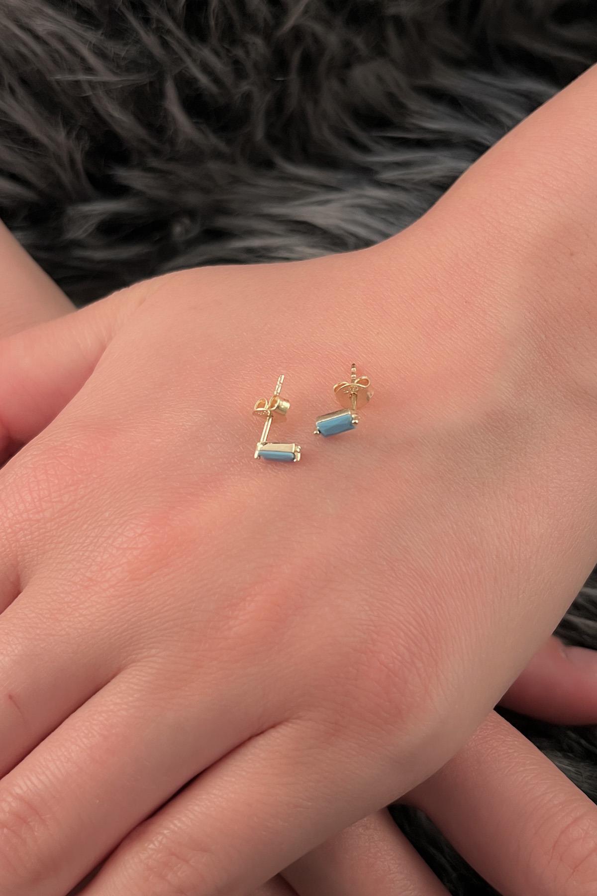 14 Ayar Altın Firuze Taşlı Baget Küpe