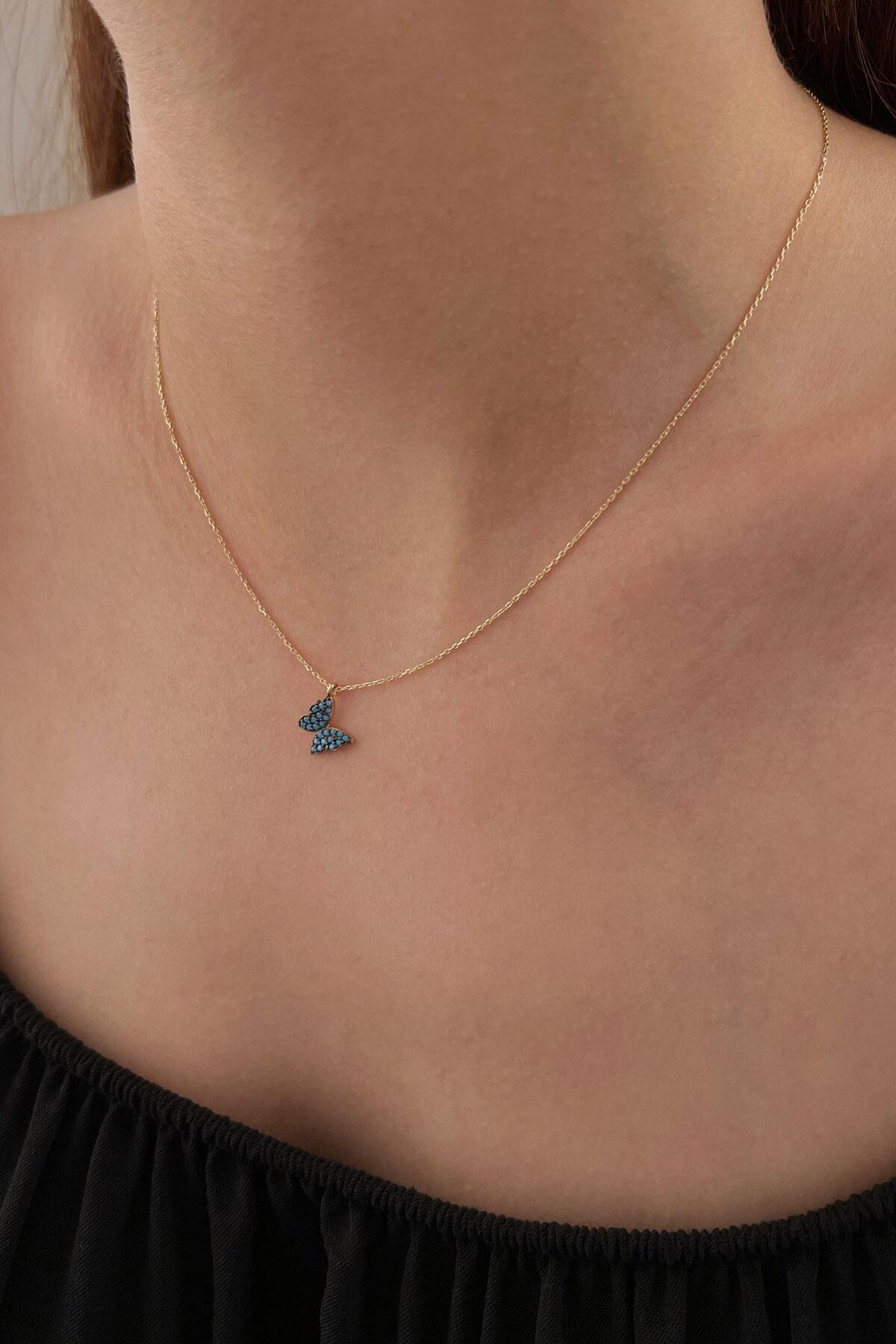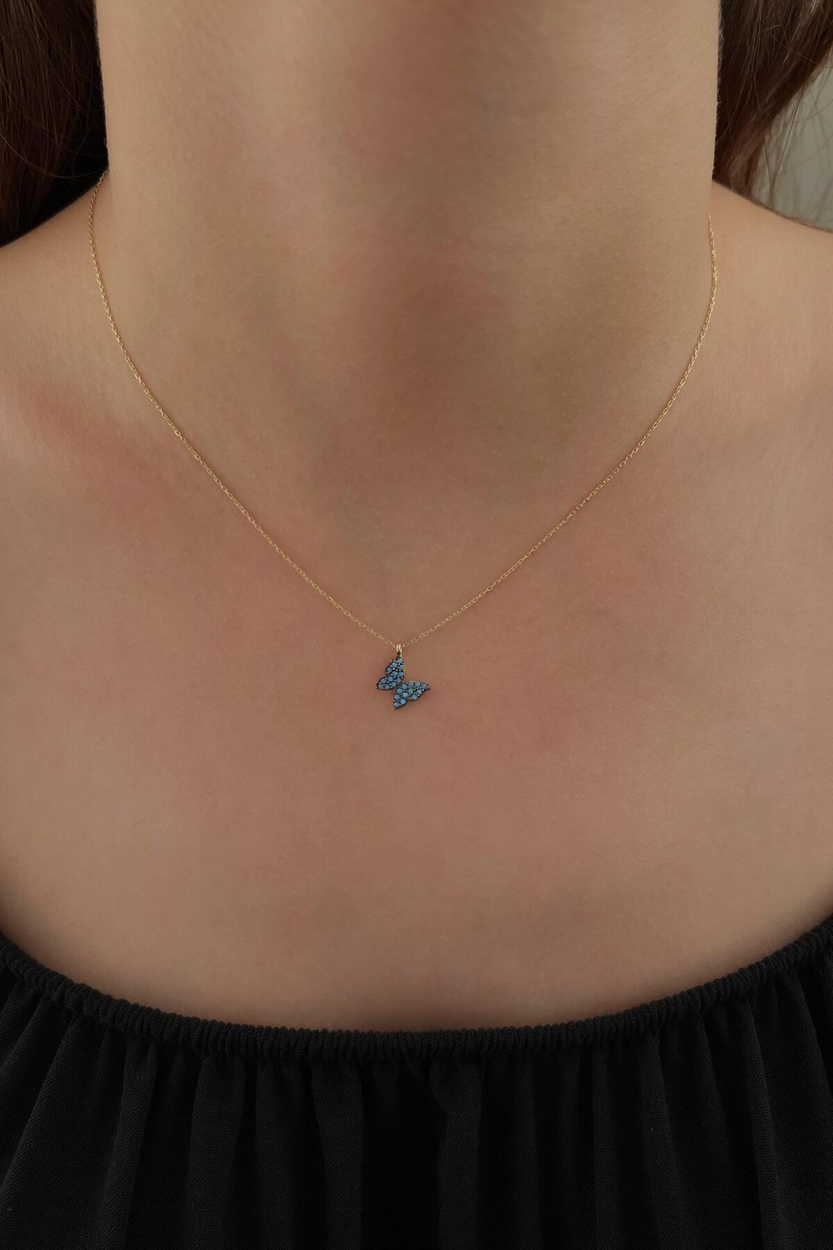 14 Ayar Altın Firuze Taşlı Kelebek Kolye