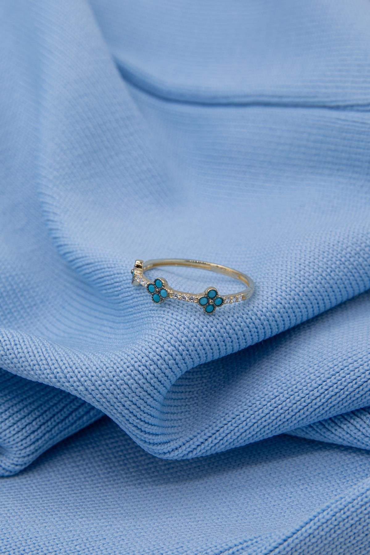 14 Ayar Altın Firuze Taşlı Papatya Yüzük