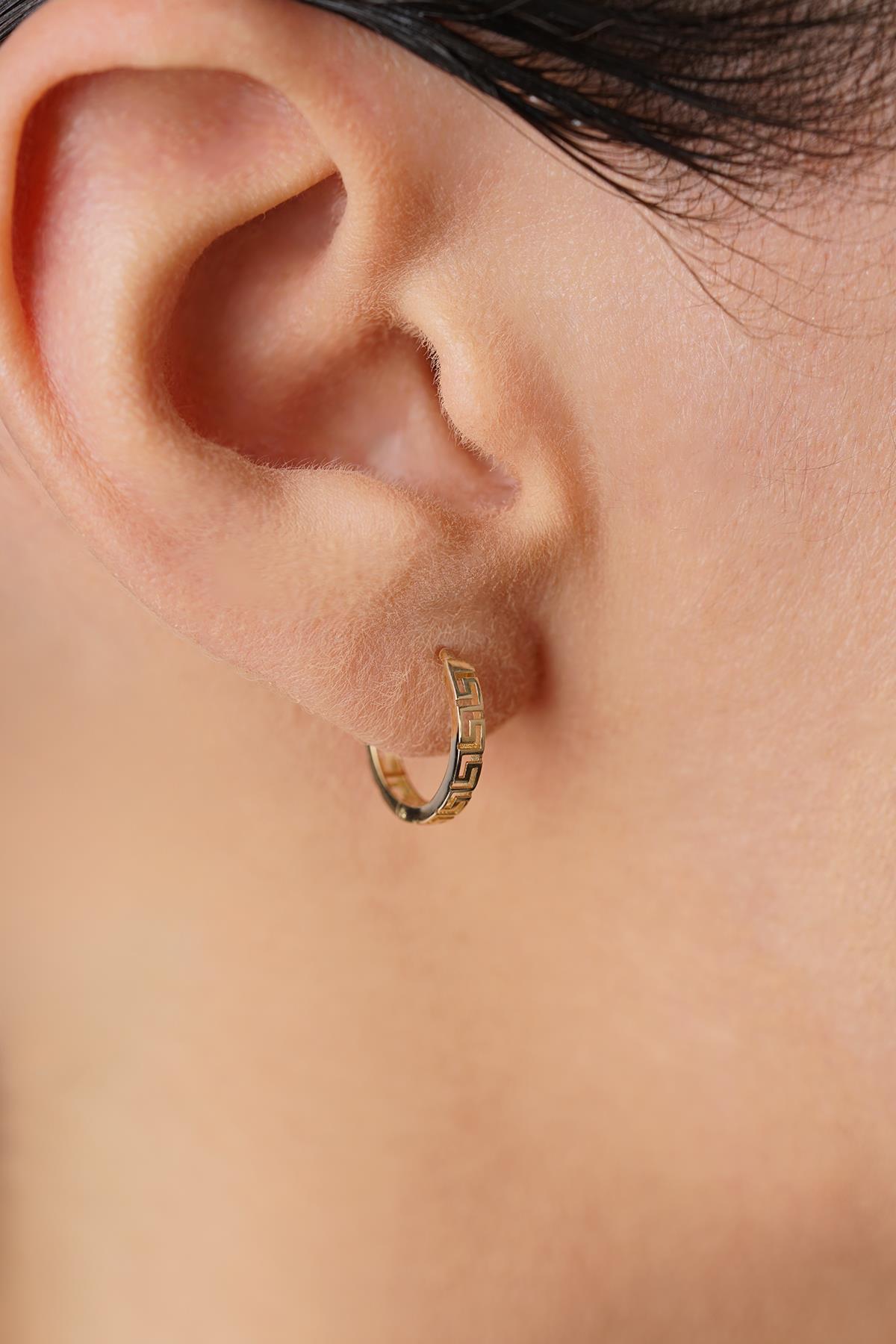 14 Ayar Altın Yunan Desenli Halka Küpe