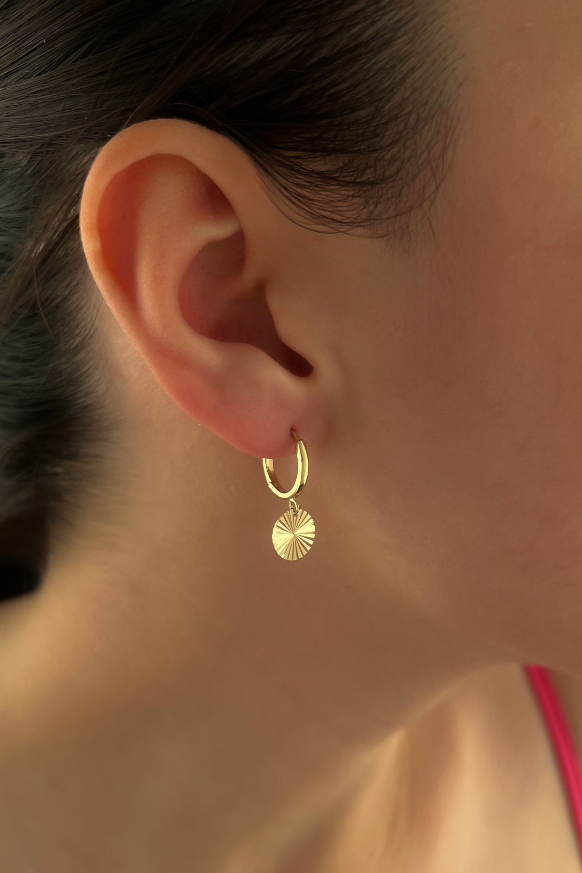 14 Ayar Altın Halka Sallantılı Işıltılı Pul Küpe