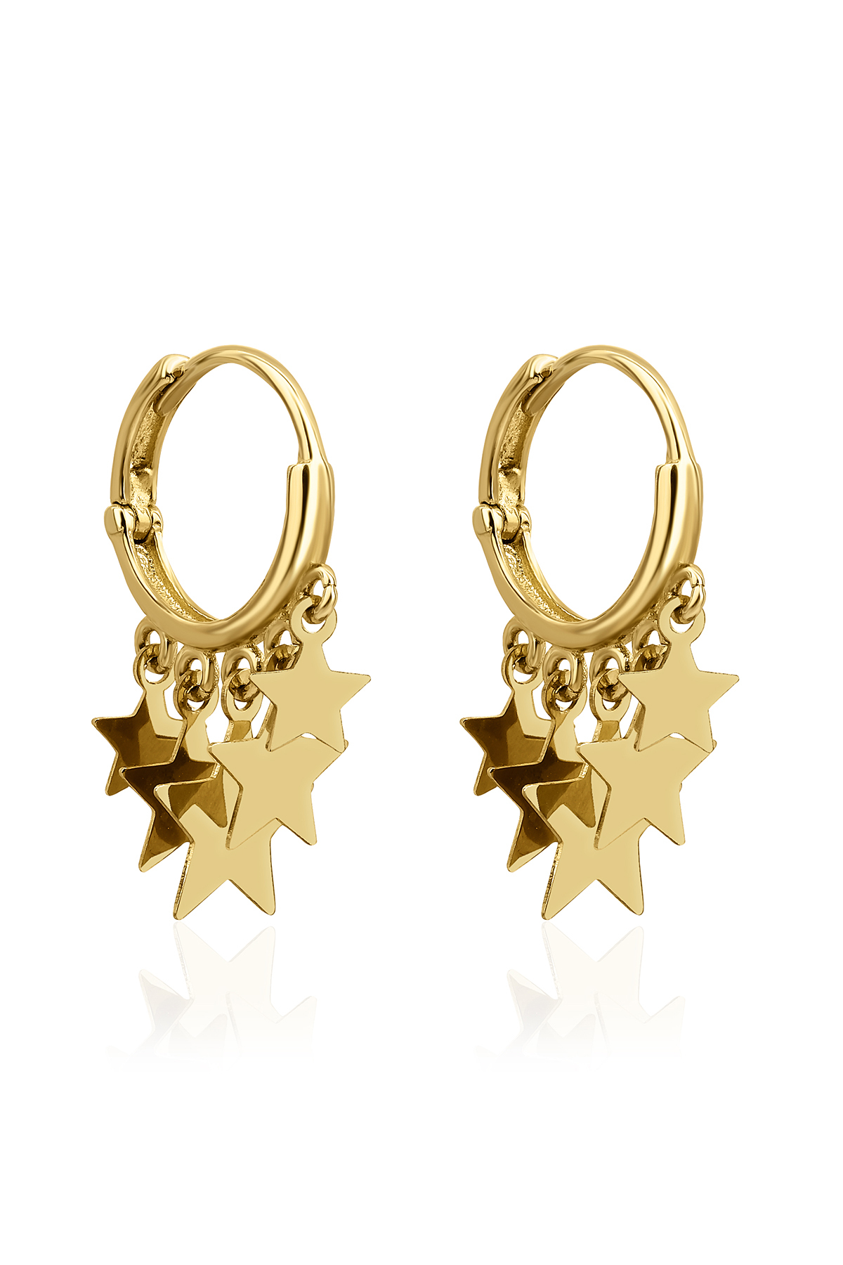 14 Ayar Altın Halka Sallantılı Yıldız Sıralı Küpe