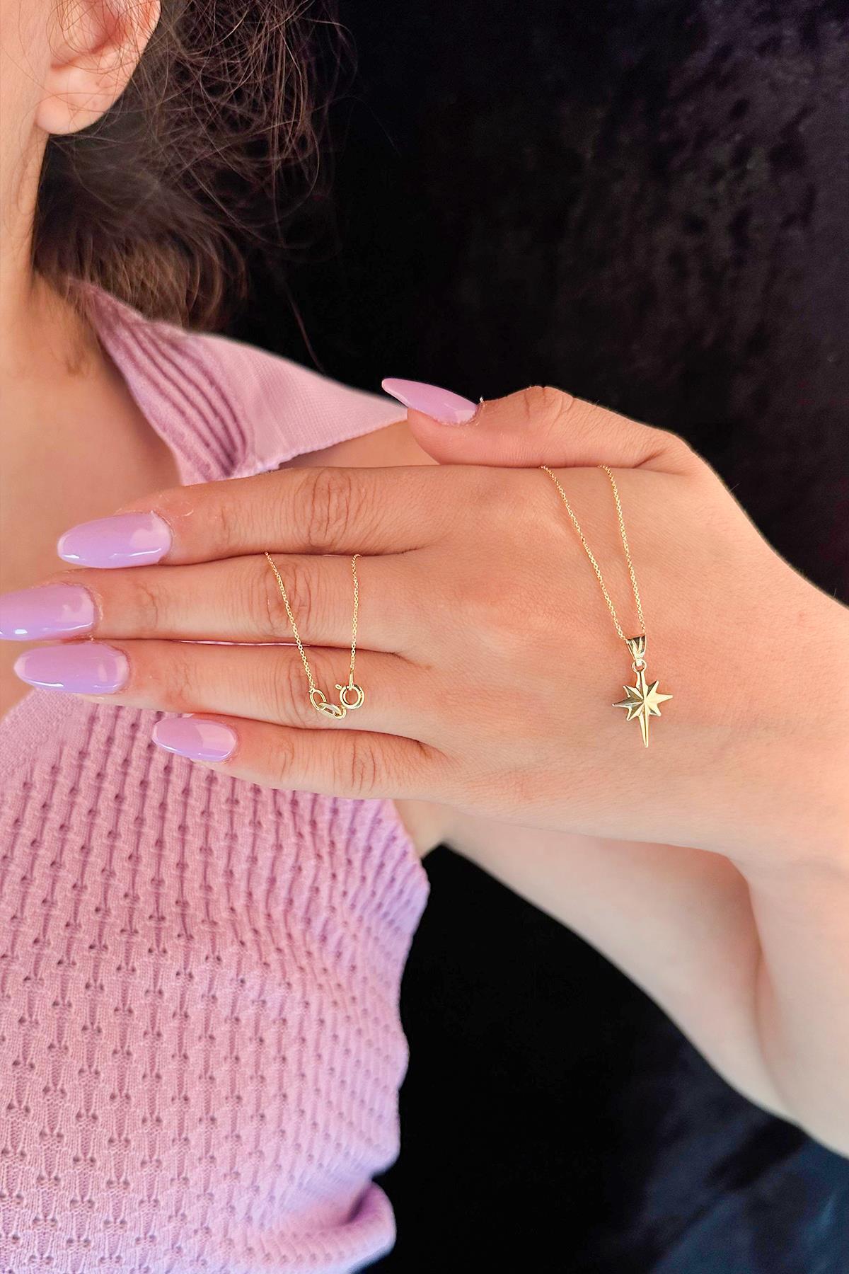 14 Ayar Altın Hayalet Zincir Kuzey Yıldızı Kolye