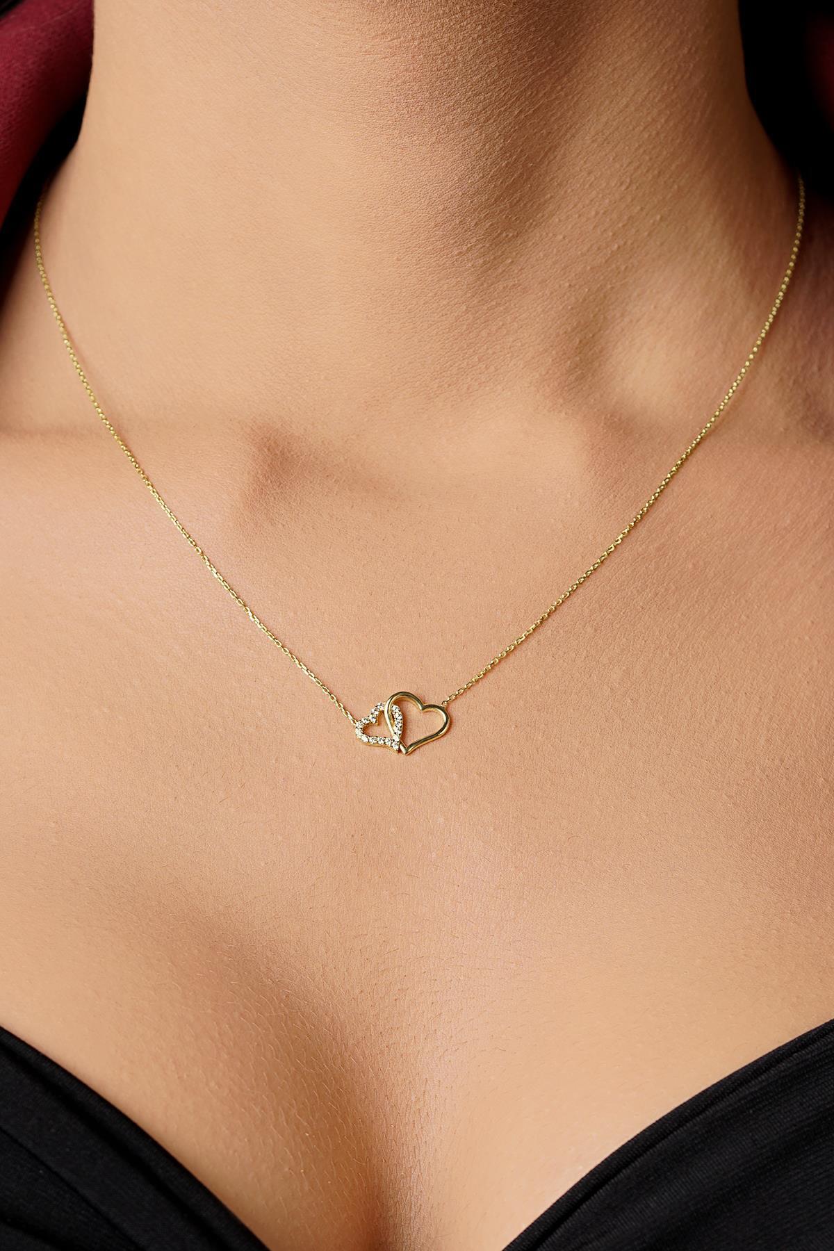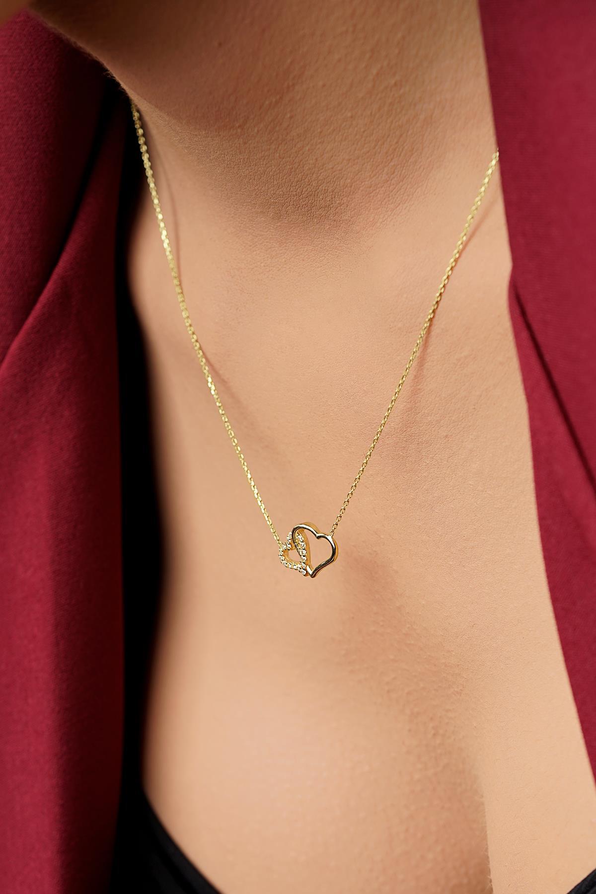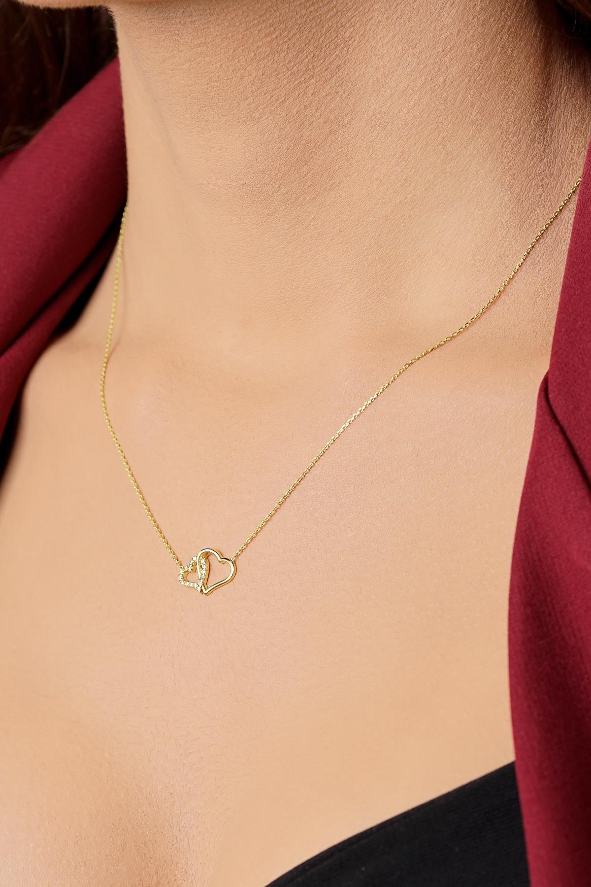 14 Ayar Altın İç İçe Kalpler Kolye