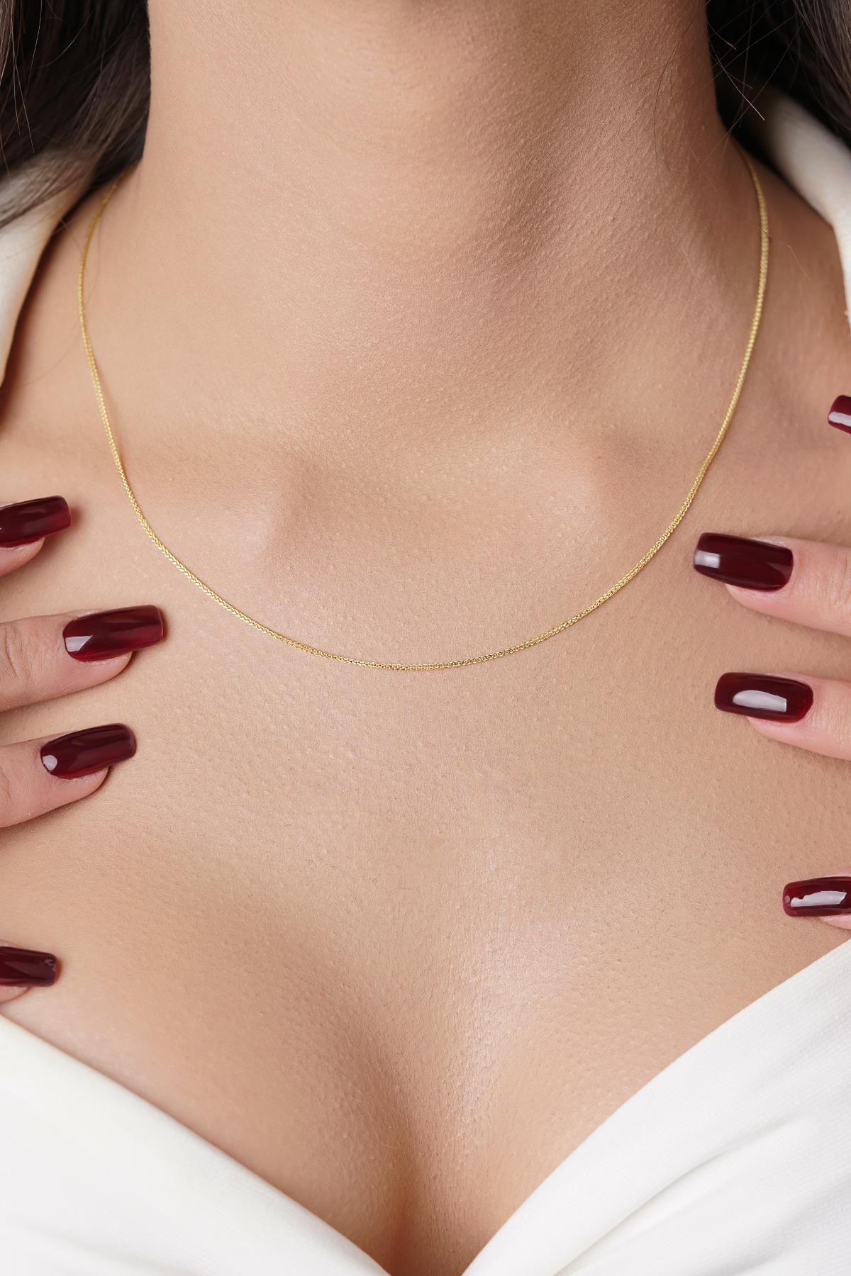 14 Ayar Altın Desenli Küp Zincir Kolye 1,05 mm