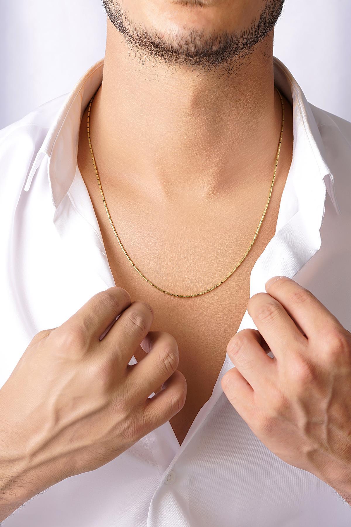 14 Ayar Altın Çubuklu Erkek Kolye