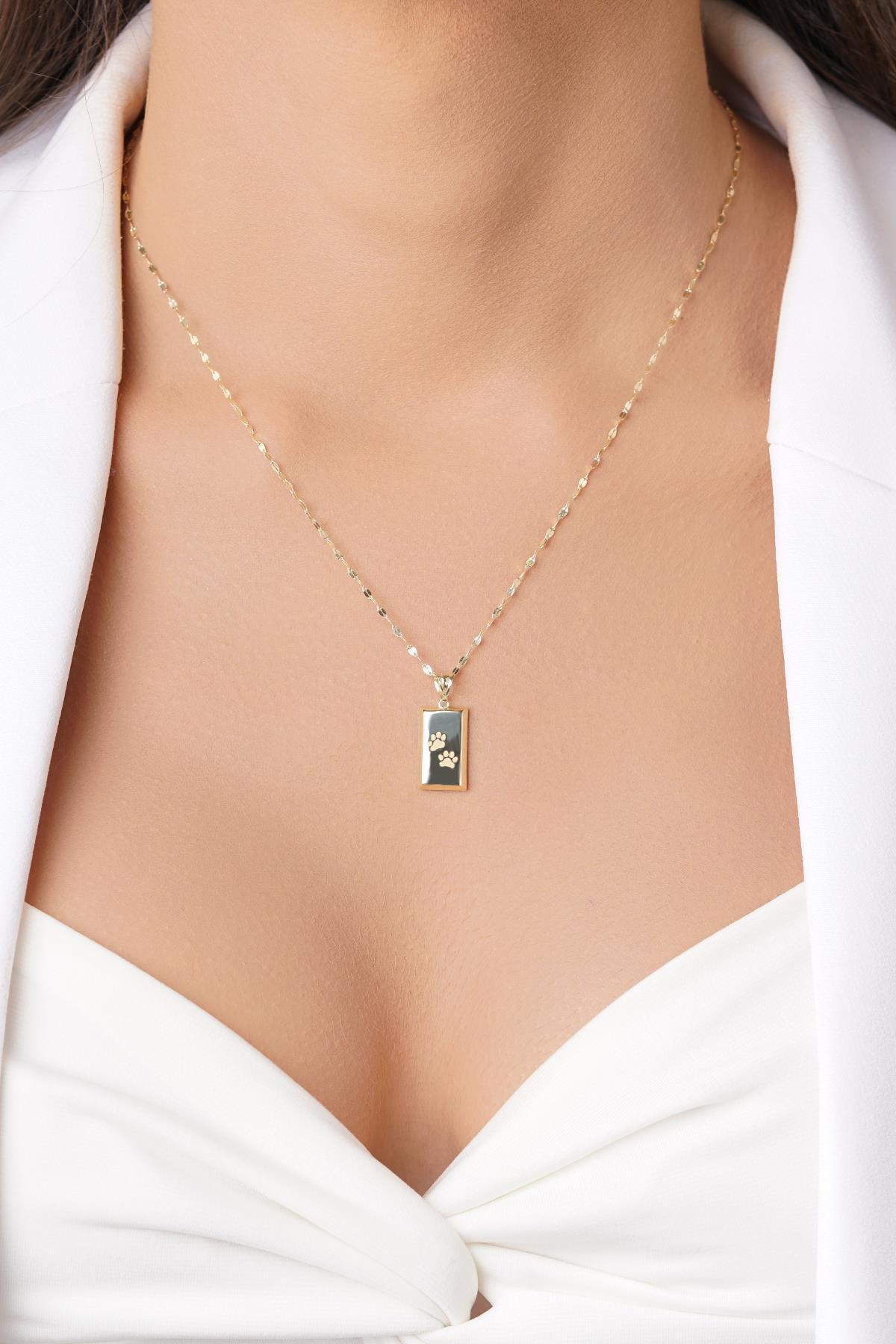 14 Ayar Altın Işıltılı Aynalı Zincir Mini Külçe Kolye