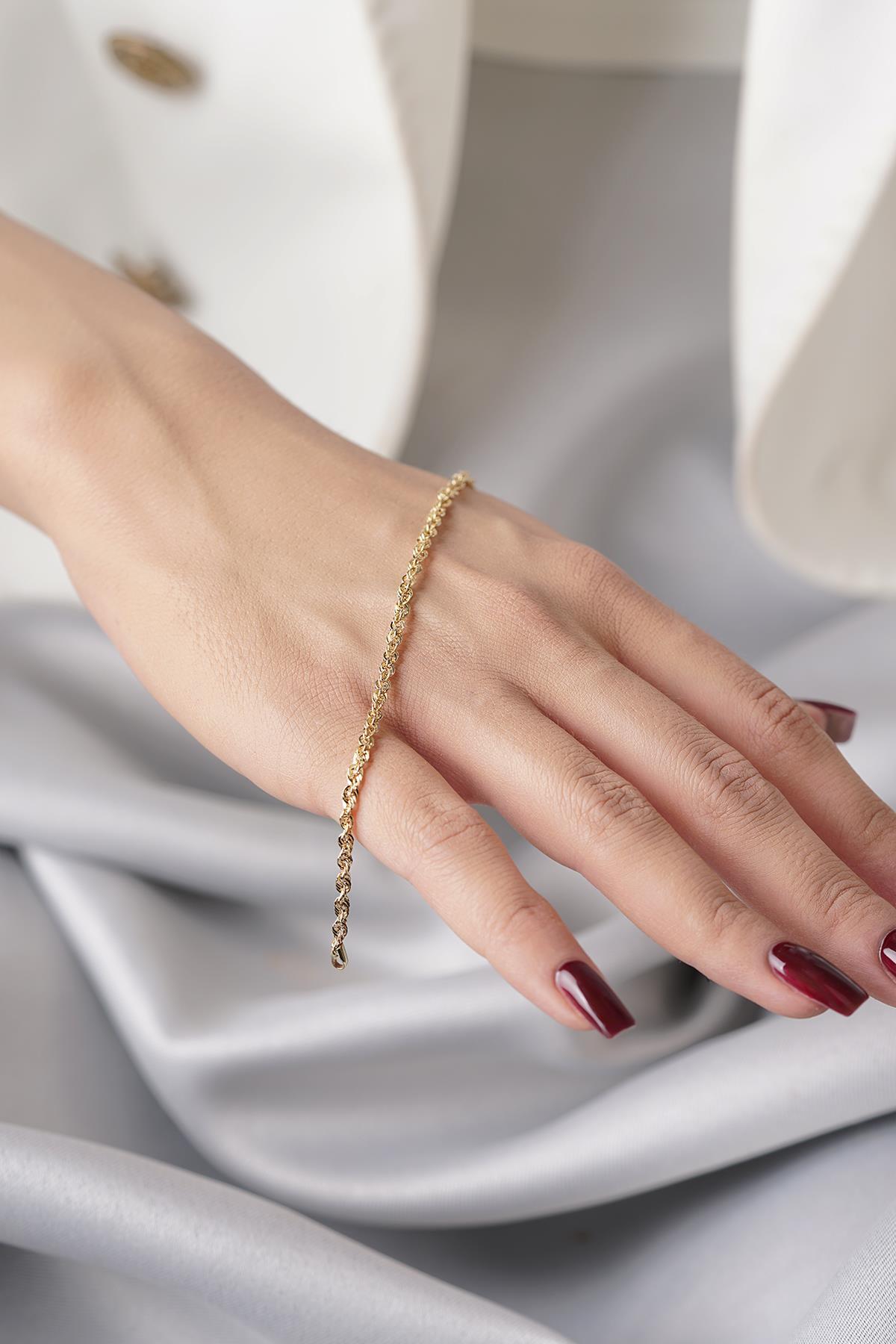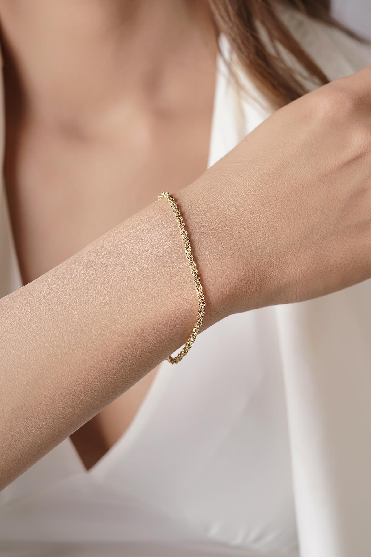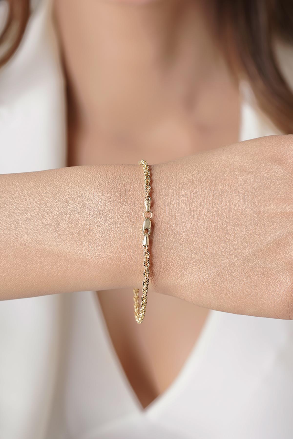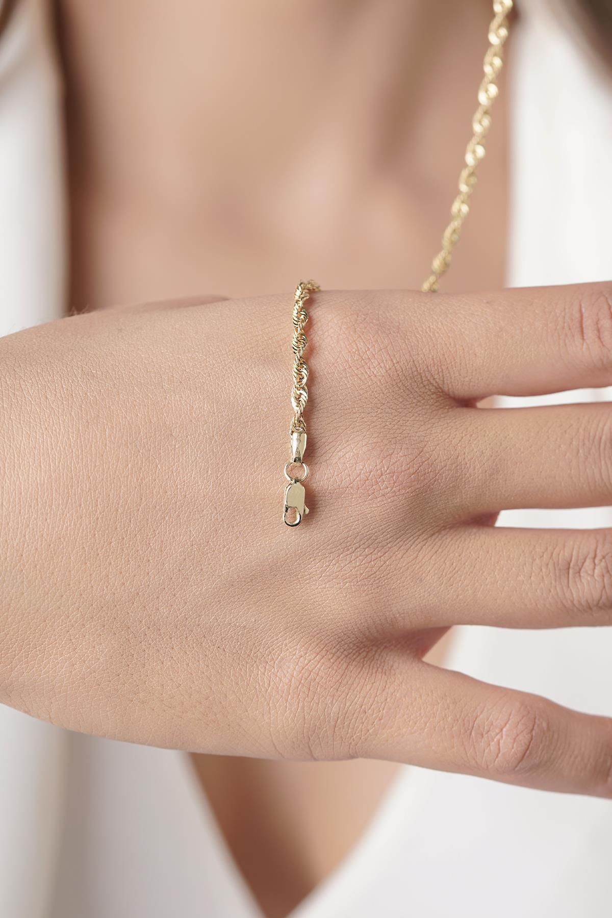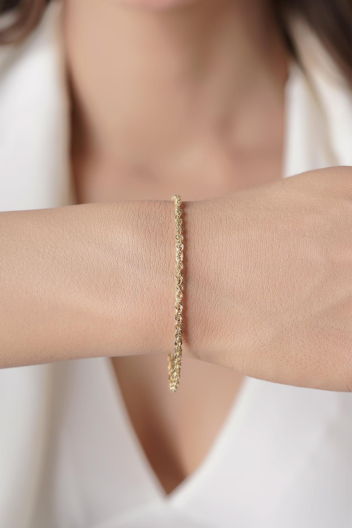 14 Ayar Altın Işıltılı Burgu Halat Zincir Bileklik 2.50 mm
