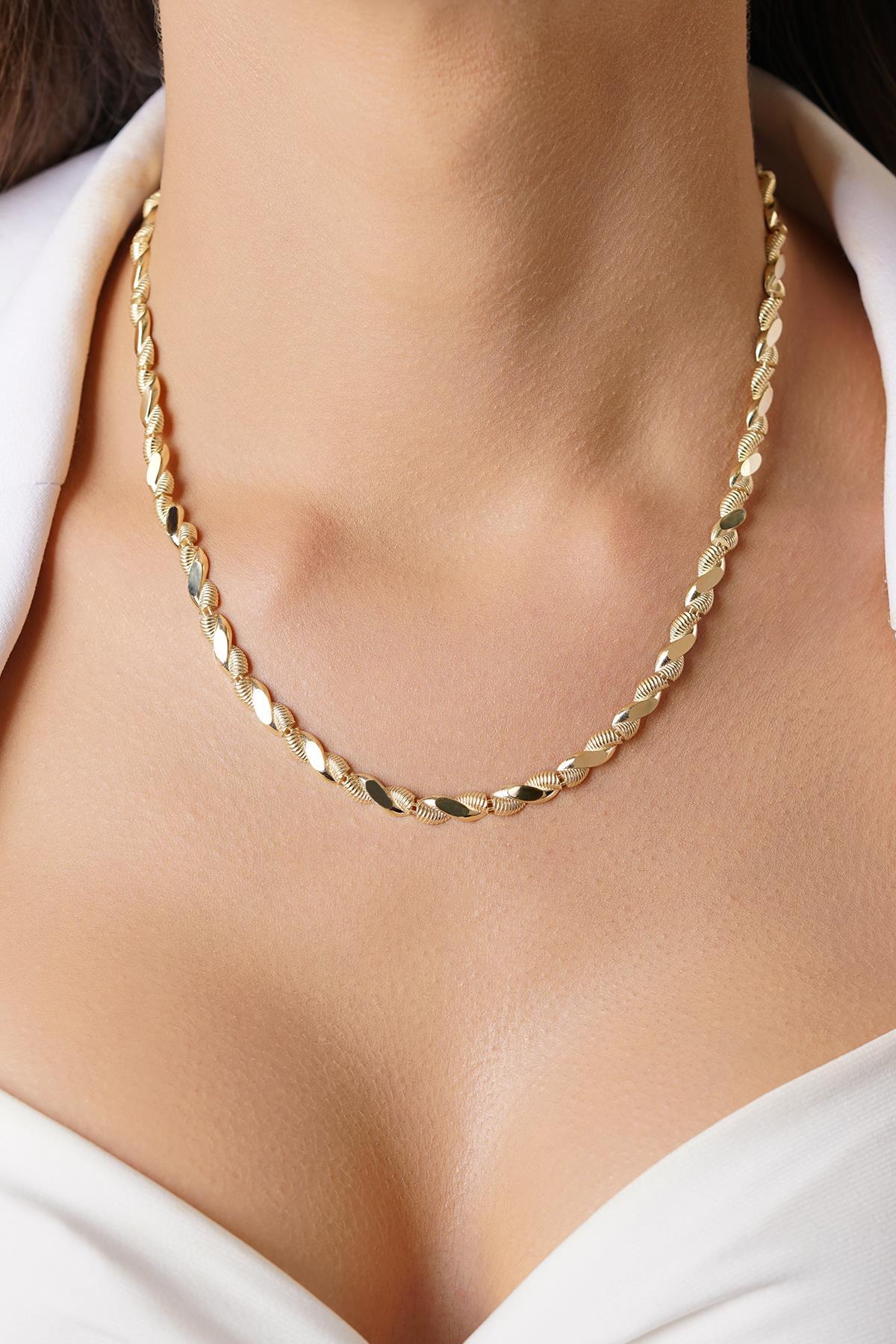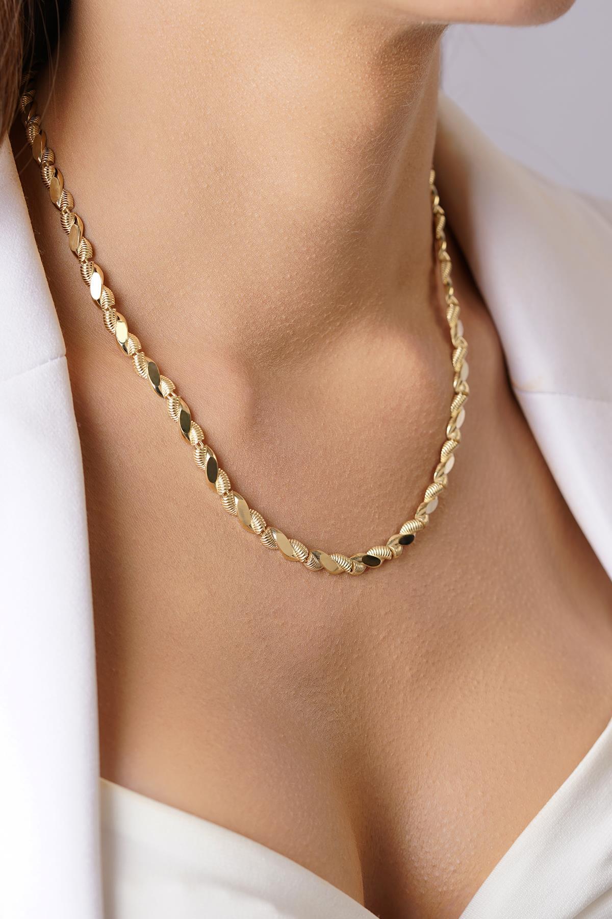 14 Ayar Altın Işıltılı Burma Kolye