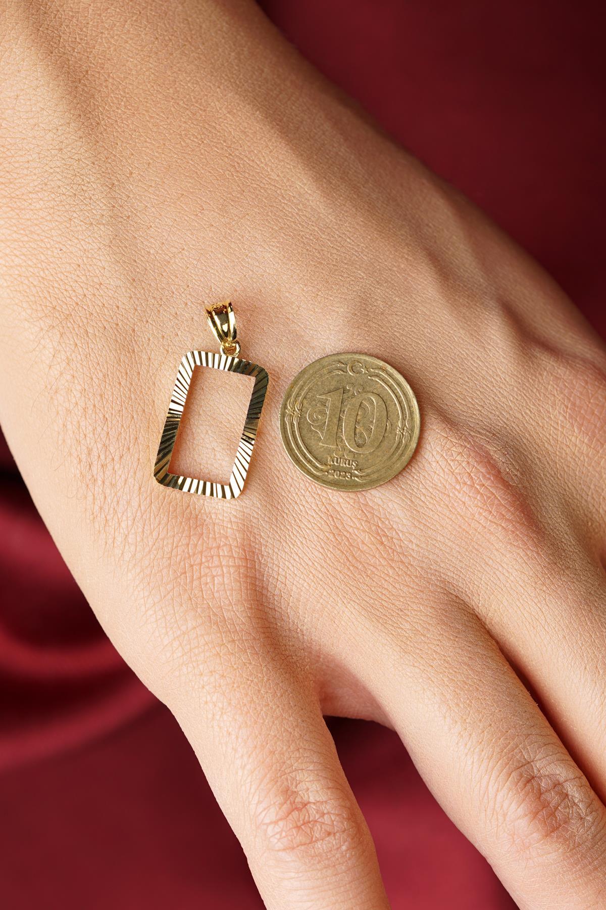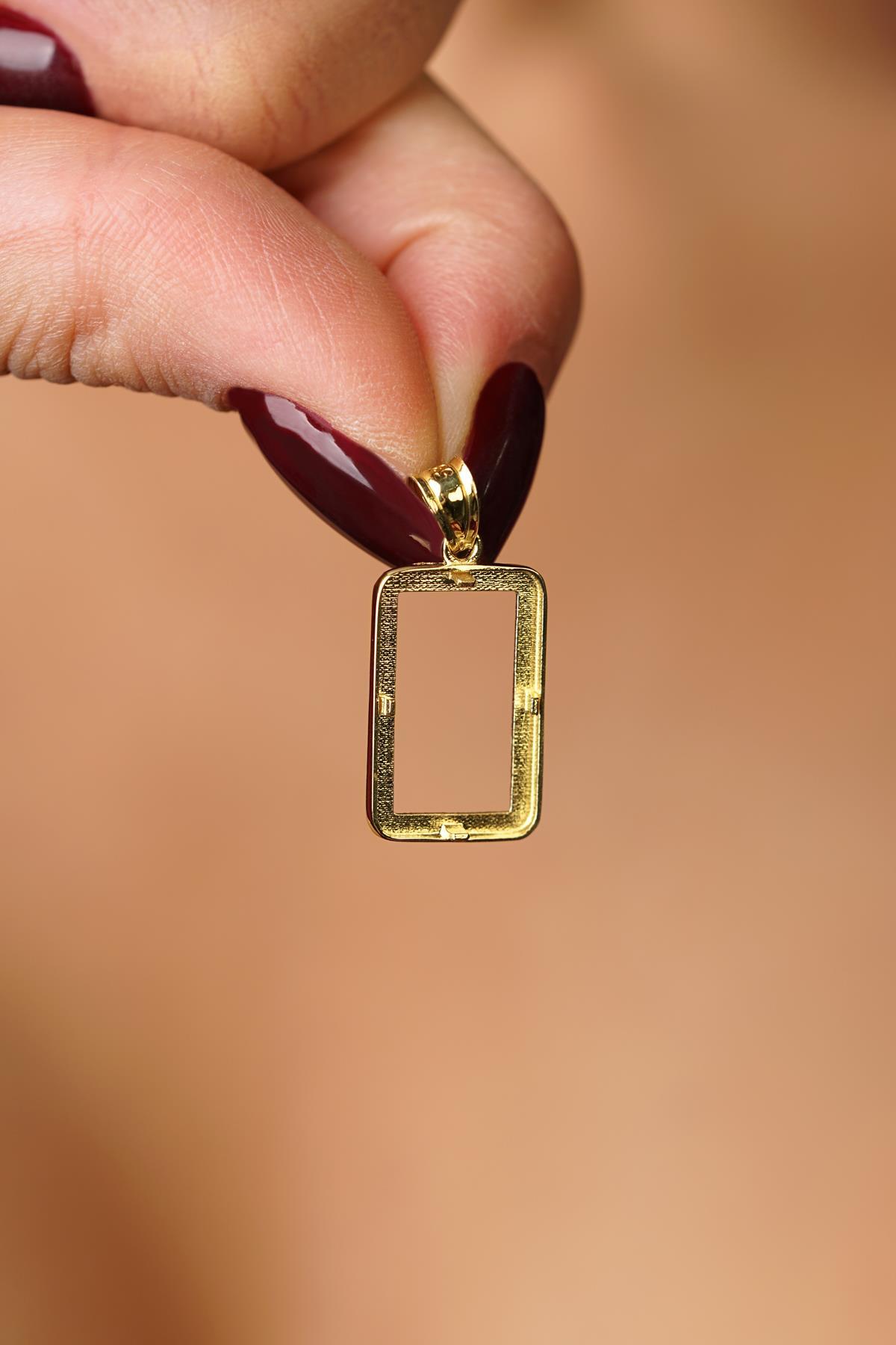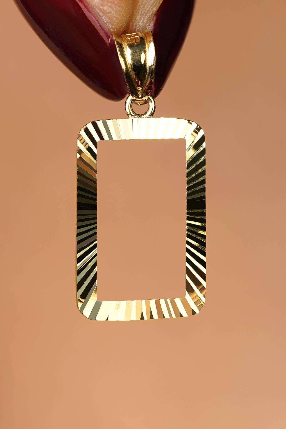 14 Ayar Altın Işıltılı Gram Altın Çerşevesi Kolye Ucu
